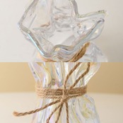 花束をラッピングして縛ったように見せられる、ランダムシェイプガラスフラワーベースです。 ユニークな形状で、小さな花束や一輪挿し、ドライフラワーを飾ってお部屋をおしゃれに、可愛く演出します。 小型なので場所も取らず、インテリアのワンポイントに。