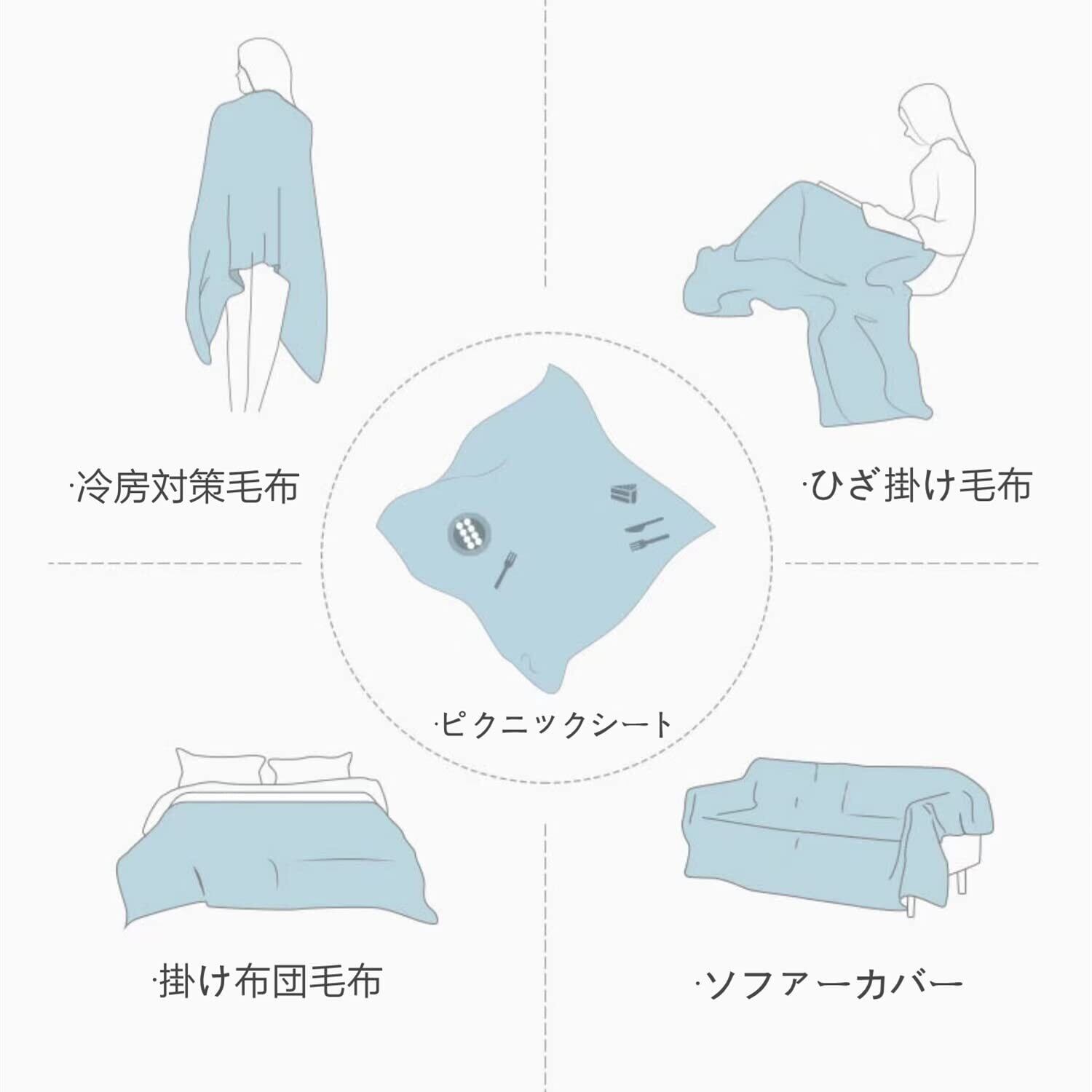 【商品仕様】サイズ: 130*180cm(1-2人掛け),材料:高品質 ポリエステル混合、コットン。 ソファカバー・チェアカバー・屋内カーペット・ベッドカバー・ひざ掛け毛布・冷房対策毛布・掛け布団毛布・テーブルクロス・ピクニックシート等、様々な用途に使えるマルチカバー。季節を問わず、オールシーズン使用OK。