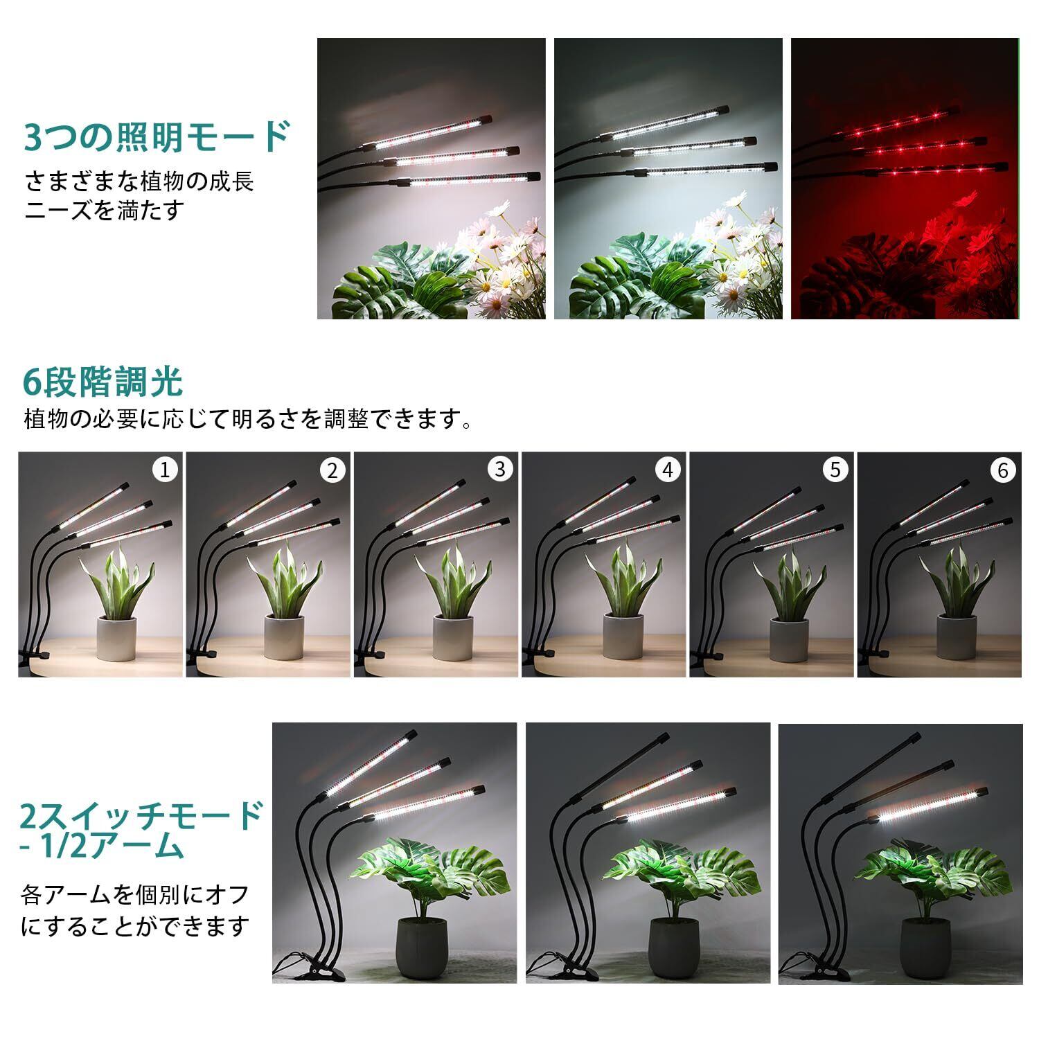 屋内植物用栽培ライト、126 LED 3ヘッドクリップ植物ライト、フレキシブルグースネック付きフルスペクトルLED植物栽培ランプ、3/6/12時間タイマー、自動オン/オフ、6段階調光可能(サンライクホワイト+レッド) | グランメゾンショップ