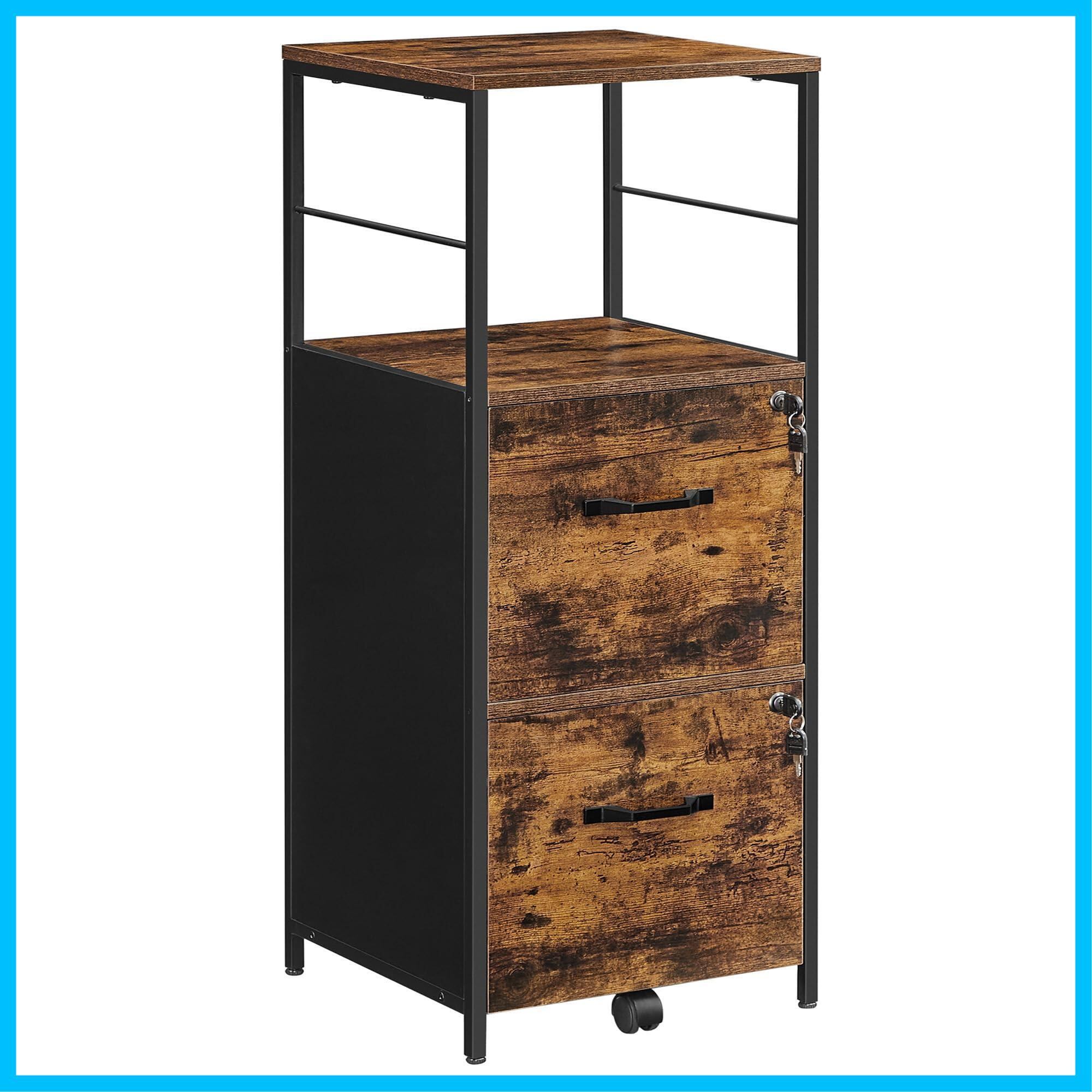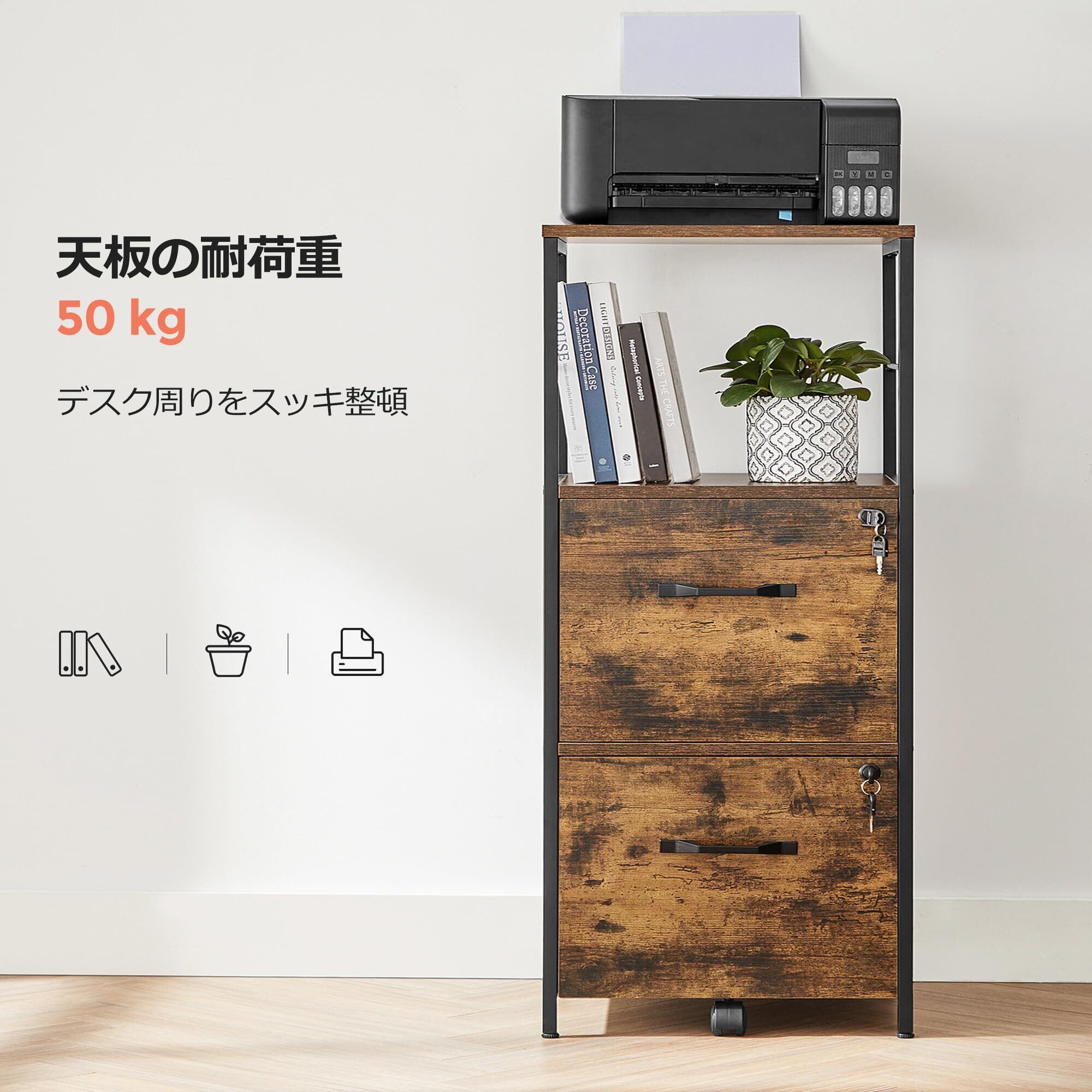 VASAGLE デスクワゴン キャスター付き 引き出し 鍵付きプリンターラックサイドワゴン チェスト ファイルキャビネット A4対応 4段 幅41*奥行40.2*高さ107.9CM キャスター付き 袖机 オフィスワゴン OFC045B01 | グランメゾンショップ