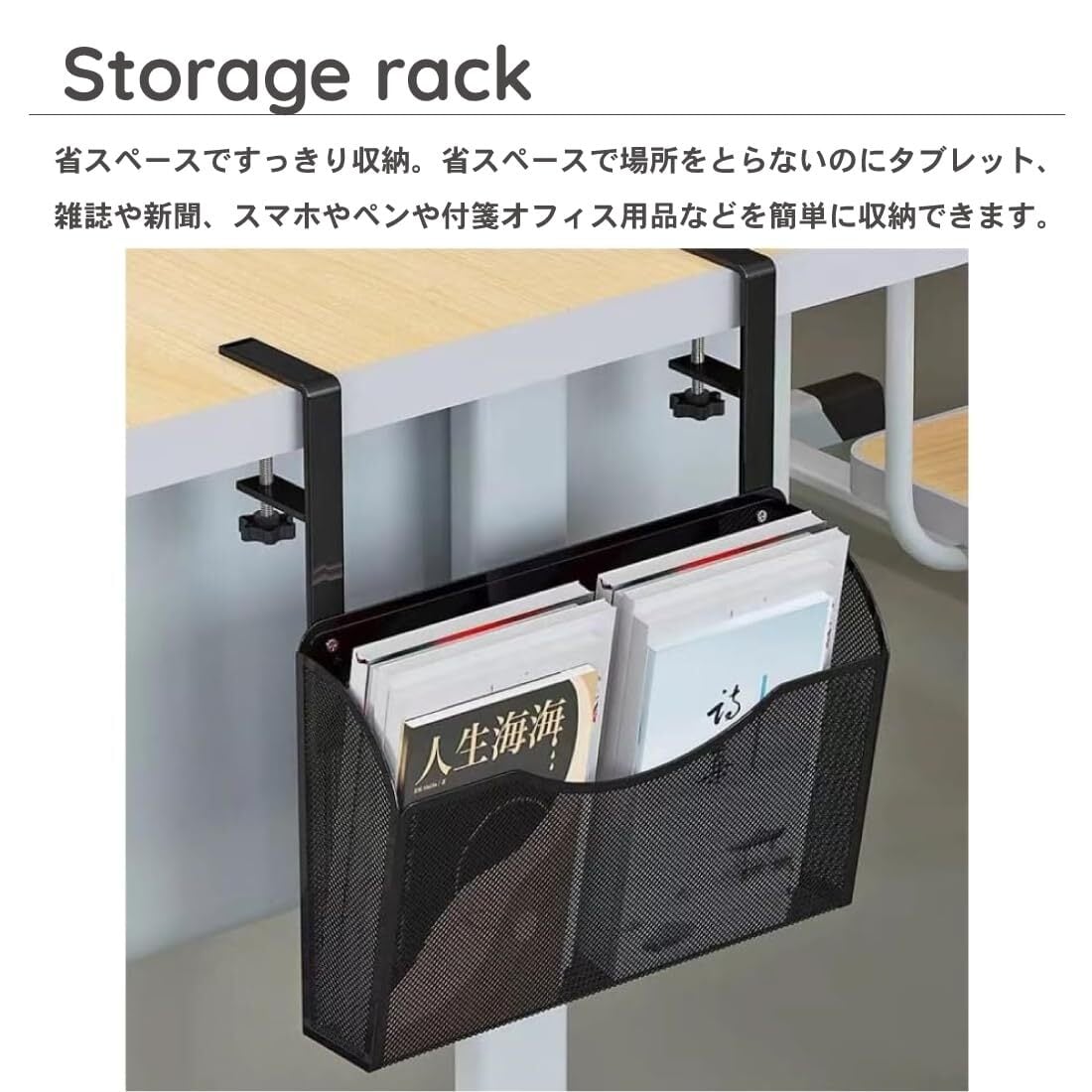 EINEY デスクサイド 収納ラック クランプ式 デスクサイドポケット テーブルサイド収納 書類収納 タブレット収納 ファイル 小物収納 机の下 デスク周り収納 (ブラック) | グランメゾンショップ