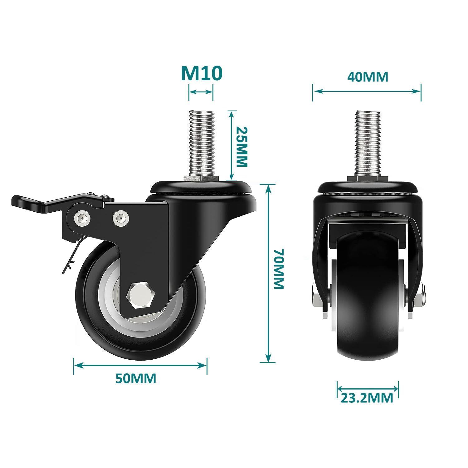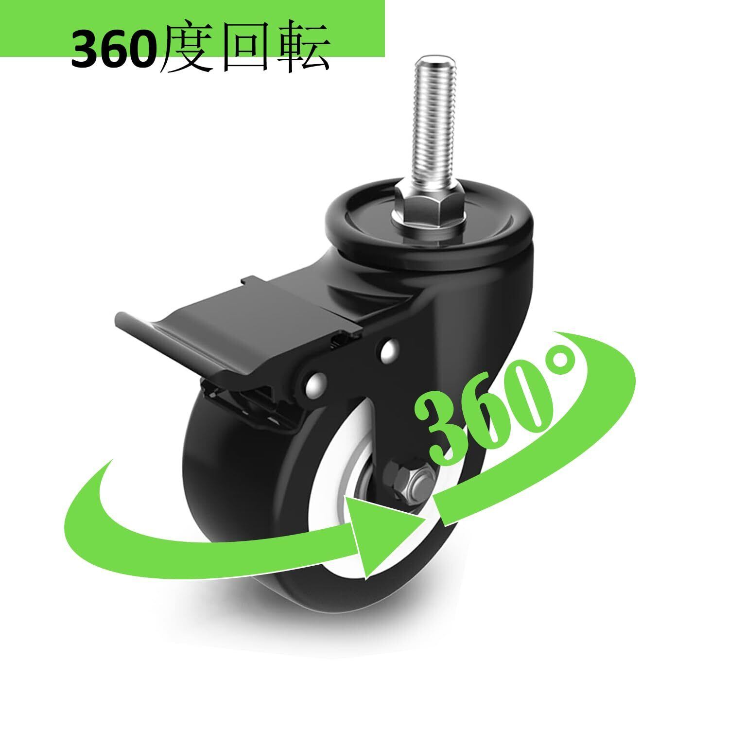 Zalslei キャスター ネジ式 自在キャスター M10 ブレーキ付き 車輪径50mm(2インチ) 耐荷重280KG 360度回転 静音 4個セット ねじ込み式 キャスター ストッパー付き A型ねじ式 ワゴン ショッピングカート 家具用 交換用キャスター DIY