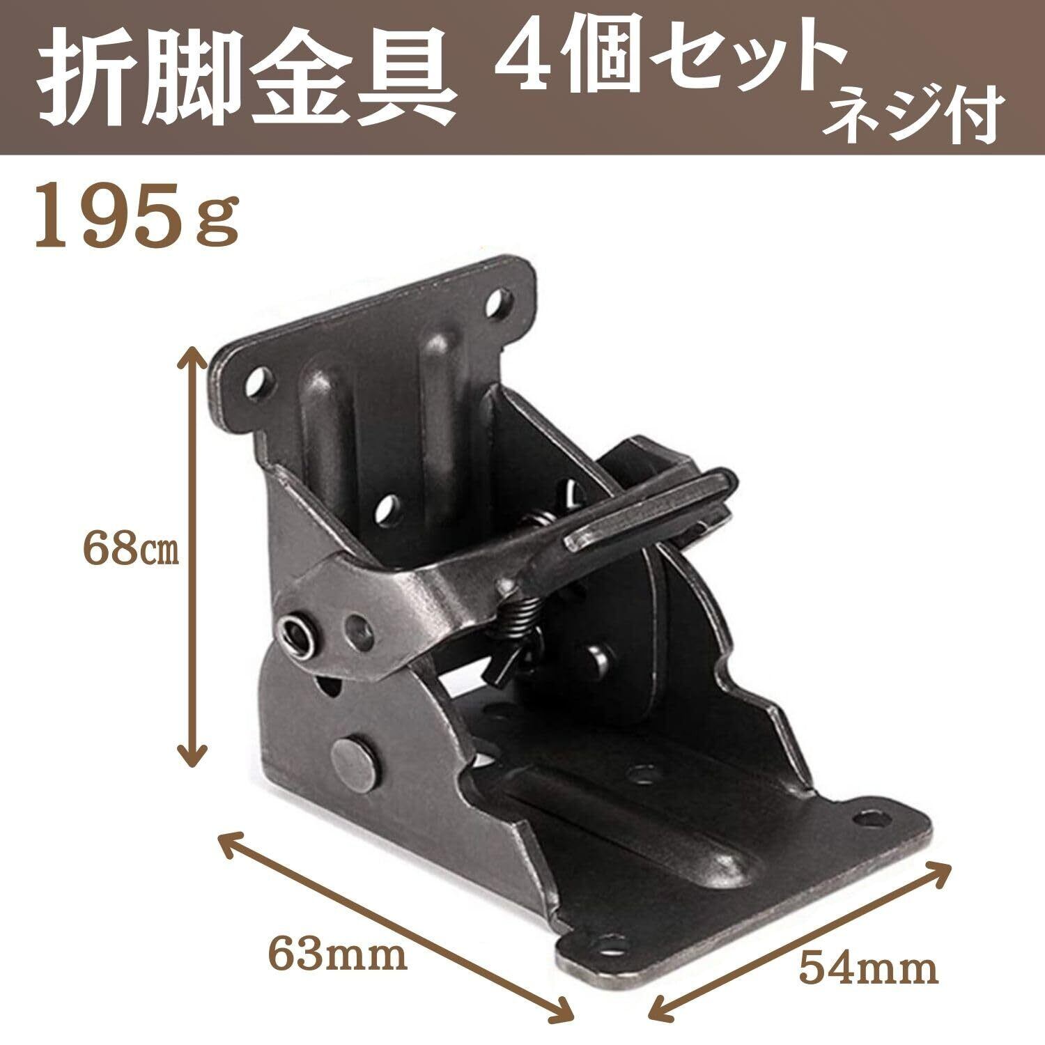 【商品概要】テーブル製作に役立つ DIY用 折りたたみ脚 折脚金具 4個セットになります。取付ネジが付属します。