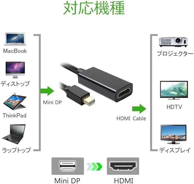 【幅広い互換性】対応機種:Mac Book Air(2010-2017年), Mac Book Pro(2010-2015年), Mac mini(2010-2014年), iMac (2009-2015年、Mini DisplayPort端子或いはThunderbolt端子搭載); ThinkPad X1, X230, X230i, X230t, X230s, S430, S230u, T430, T430u, T430i, T430s, T530, T530i, L430, L530, W530; Dell Xps14z, Xps15, Xps15z, Xps17; Surface Pro 2/3/4/5/6(mini Displayport端子搭載)。