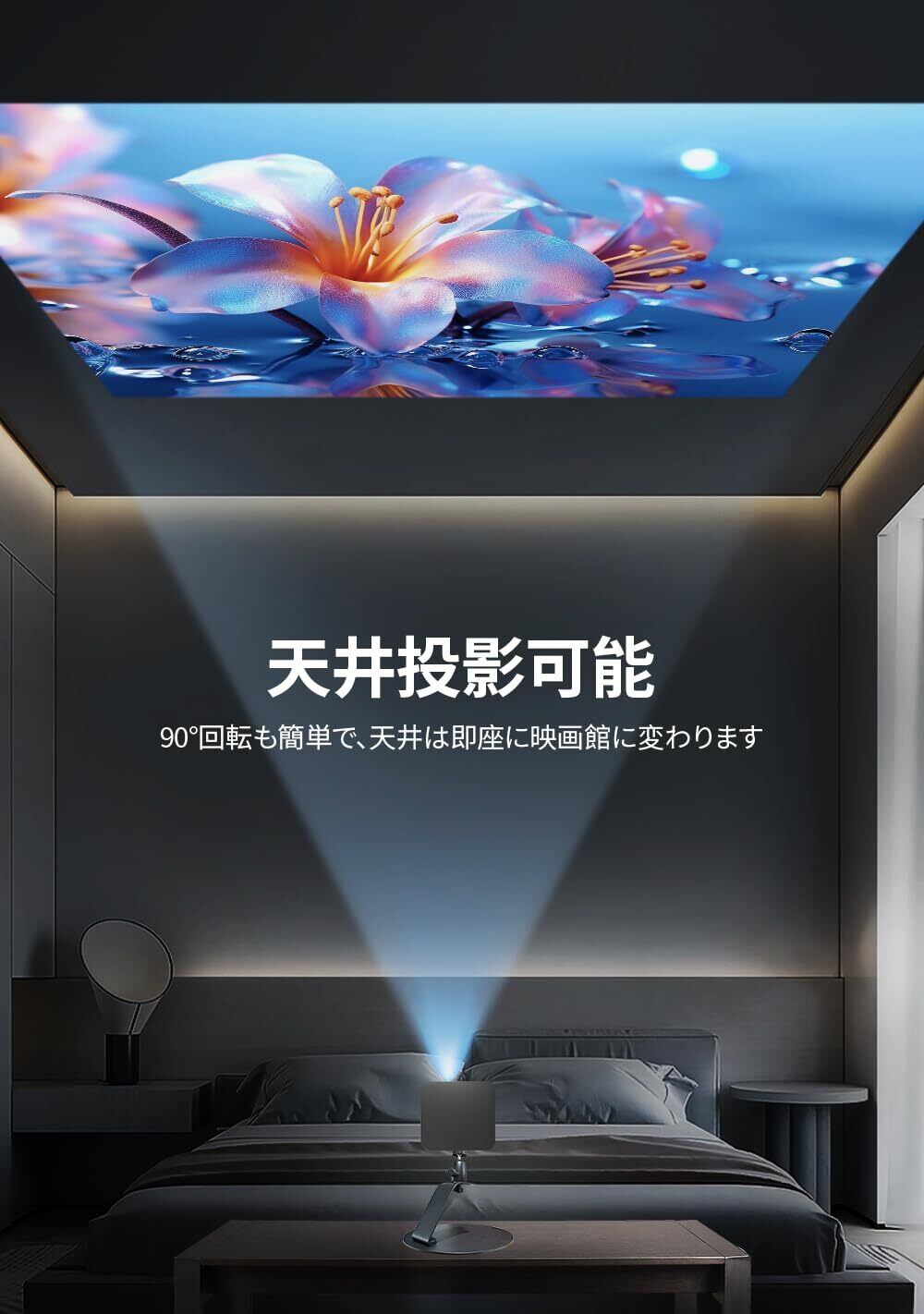 【持ち運び便利·多用途】取り外し可能で、セットアップも簡単のため、どこでも持ち運びに便利です。ベッドサイド、ソファ、リビングテーブル、オフィスなど、場所をとらずに好きな場所に置くことができます。見た目がスタイリッシュで、プロジェクター本体とピッタリ合うデザインが特徴です。部屋のインテリアに調和し、高級感を演出します。
