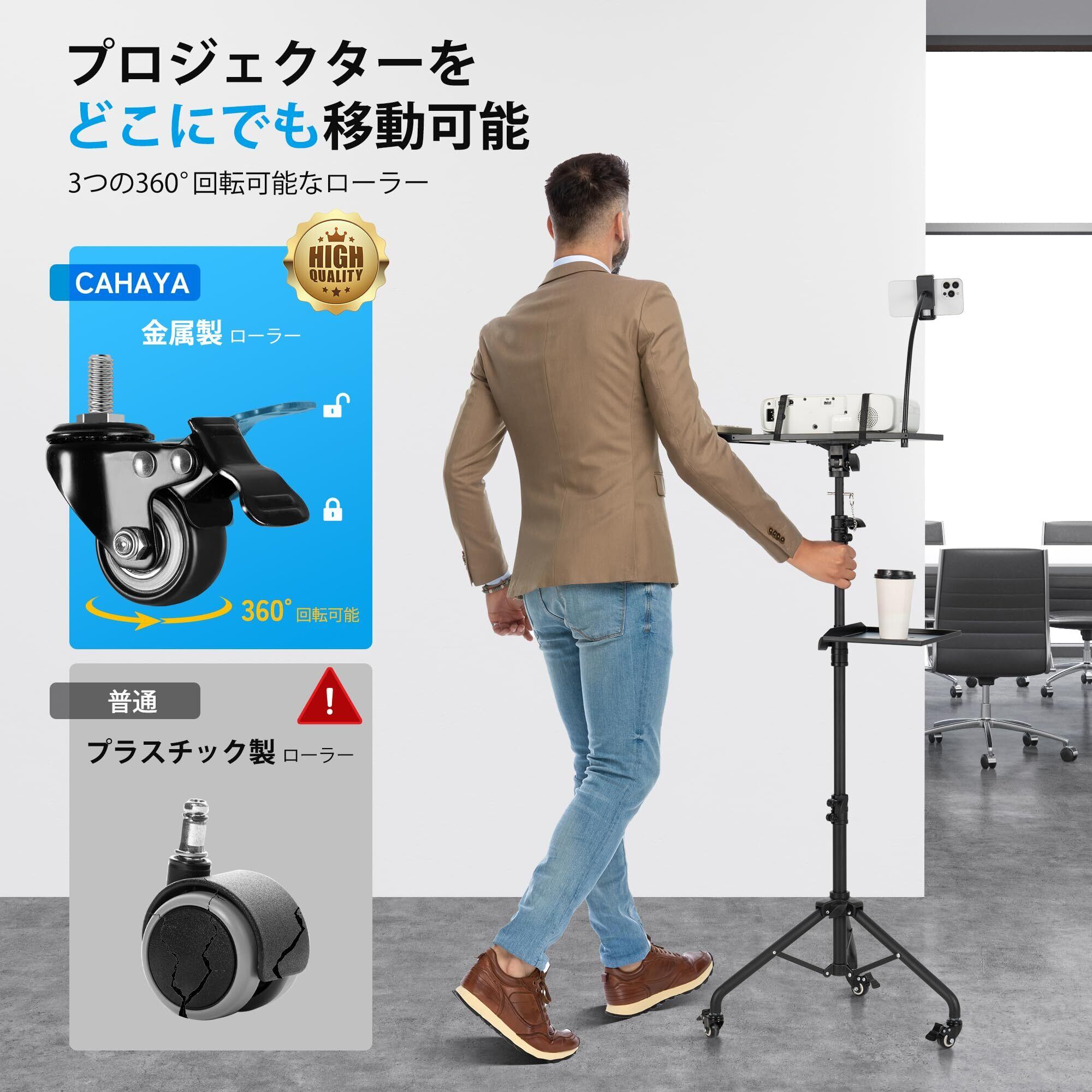 CAHAYA プロジェクタースタンド 三脚 3ローラー付き 軽量 マウストレイ カップやスピーカートレイ スマホホルダー付き 耐荷重14kg 71cm〜137cm高さ調整可能 180°回転トレイ 譜面台 ノートパソコンスタンド 多用途 コンパクト 収納便利 オフィス ホームシアター キャンピング用 日本語取付説明書付き ブラック | グランメゾンショップ