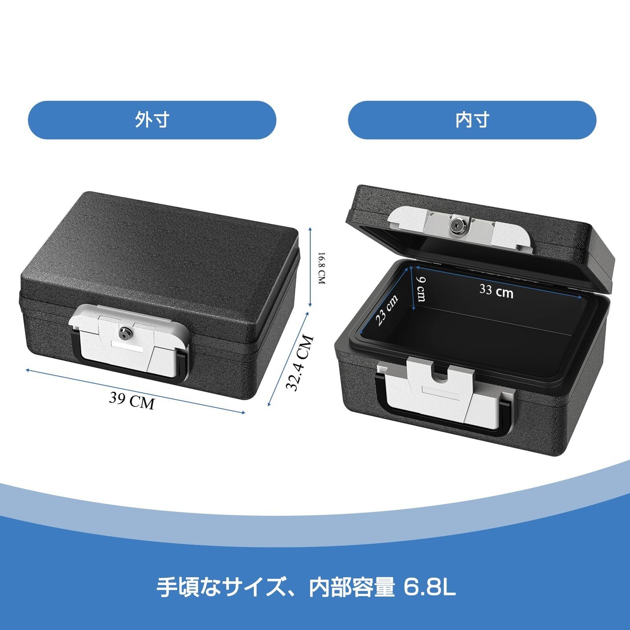 WASJOYE 手提げ金庫 耐水耐火金庫 ETL規格 鍵付き A4用紙対応 地震火災対策 ポータブル金庫 コンパクト持ち運び便利 会計 オフィス用 家庭用手提げ金庫 日本語取扱説明書付き (7.0L) | グランメゾンショップ