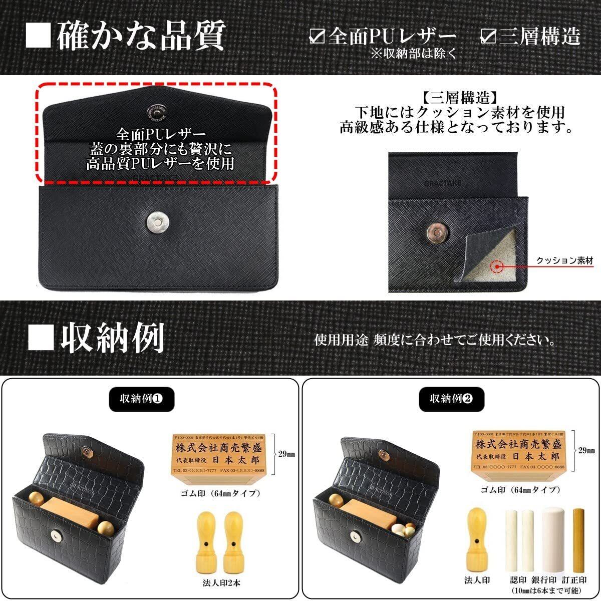 GRACTAKE【商売繁盛】印鑑ケース 法人 2本 ゴム印 (実印 銀行印 角印 認印 横判 など) 持ち運び 携帯用 02 (ブラックーSFA)