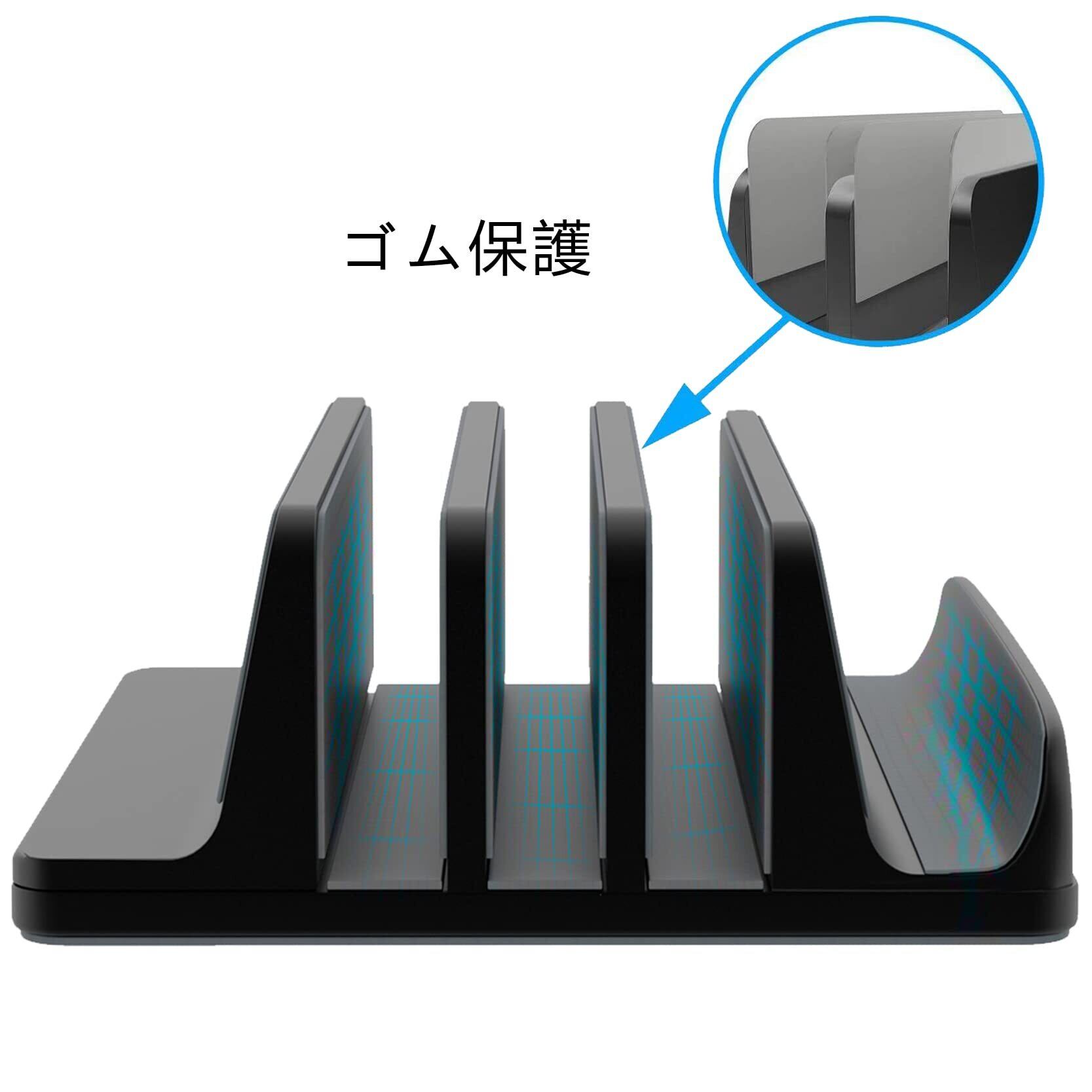 新型4in1ノートパソコンスタンド、縦置きスタンド、冷却スタンド、幅を調整可能、アルミニウム素材、省スペース、滑り止めで、安定感があります。MacBook Pro/Air/Microsoft Surfaceのすべてに対応し、新デザインを採用しています黒