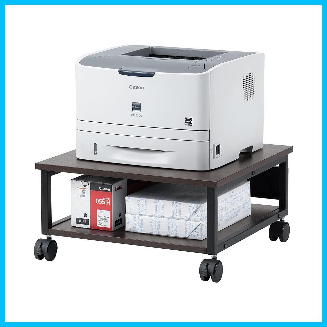 イーサプライ プリンター台 2段 キャスター付き 幅50cm 奥行50cm 高さ25cm 大型 A3 デスク下 総耐荷重50kg オフィス 木製 ダークブラウン木目 ブラック EEX-PTS07DBR