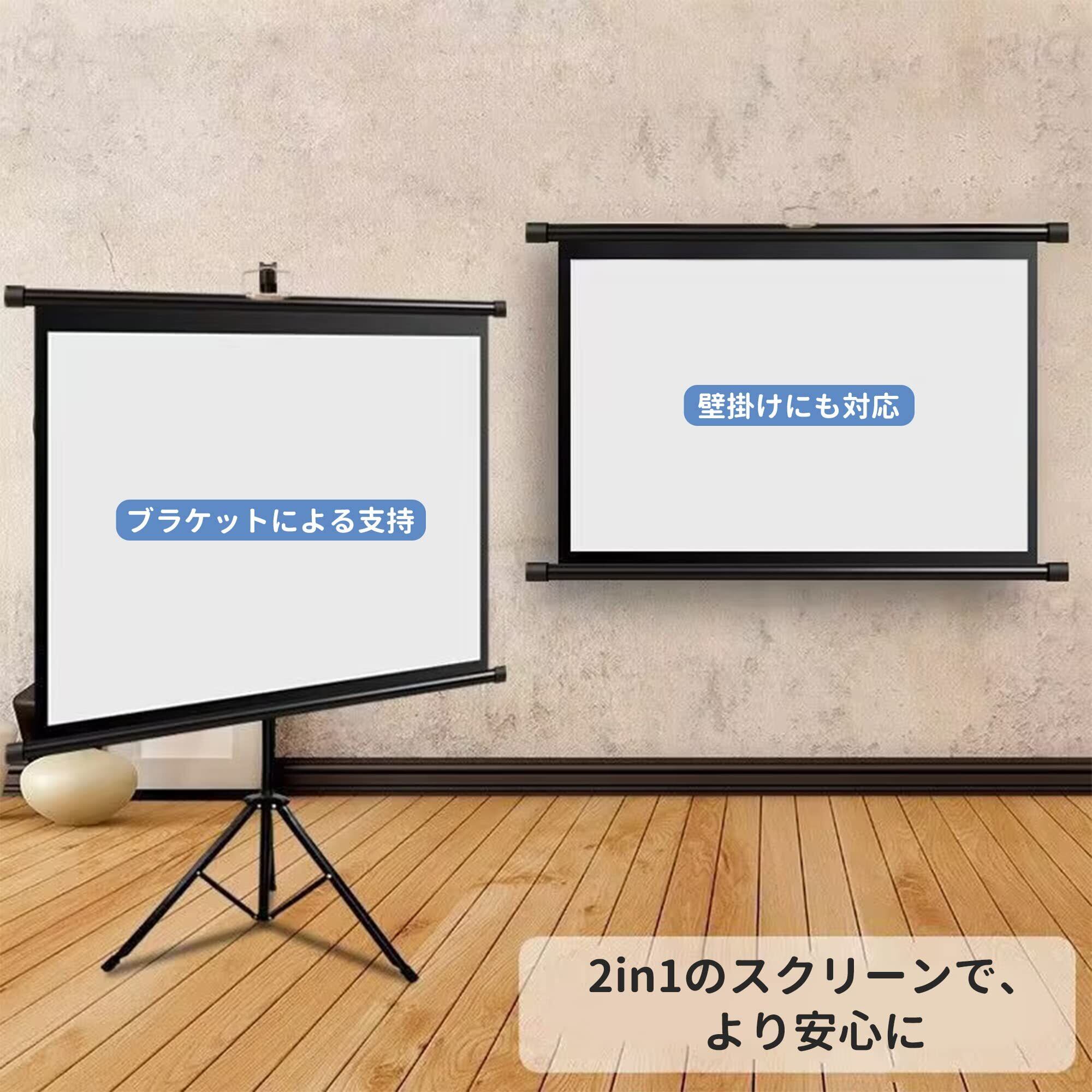 4K対応 プロジェクタースクリーン 100インチ 2in1 自立式 携帯型 三脚式 サポート壁掛け 屋内屋外兼用 投影用 会議 教室 映画スクリーン折りたたみスクリーン16:9 視野角160° お手入れ簡単 コスパ | グランメゾンショップ