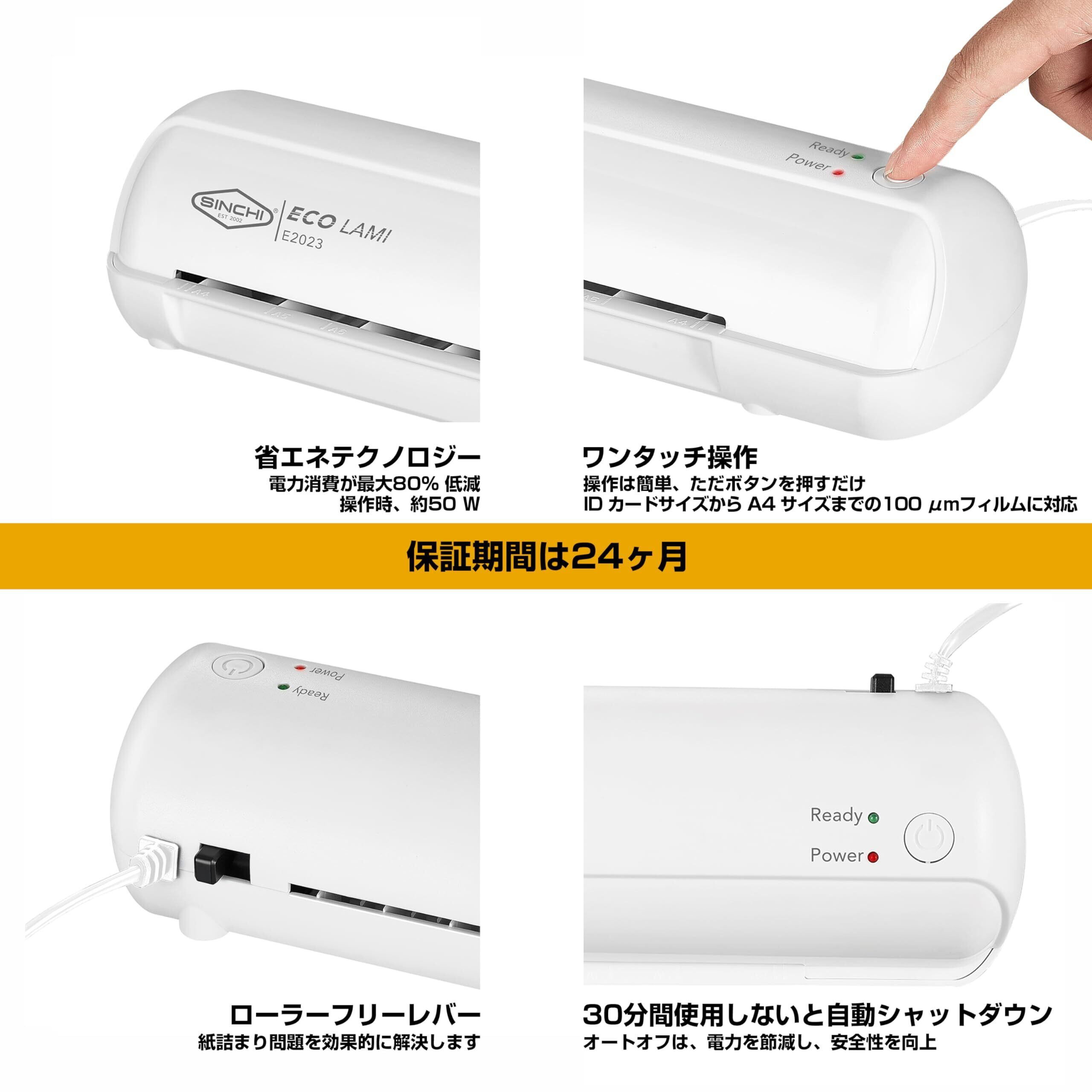 SINCHI ラミネーター A4対応 75-100μm(薄紙・厚紙対応)名刺・写真・はがき対応 ワンクリック操作・自動オフ・省スペース設計 家庭・オフィス・学校用