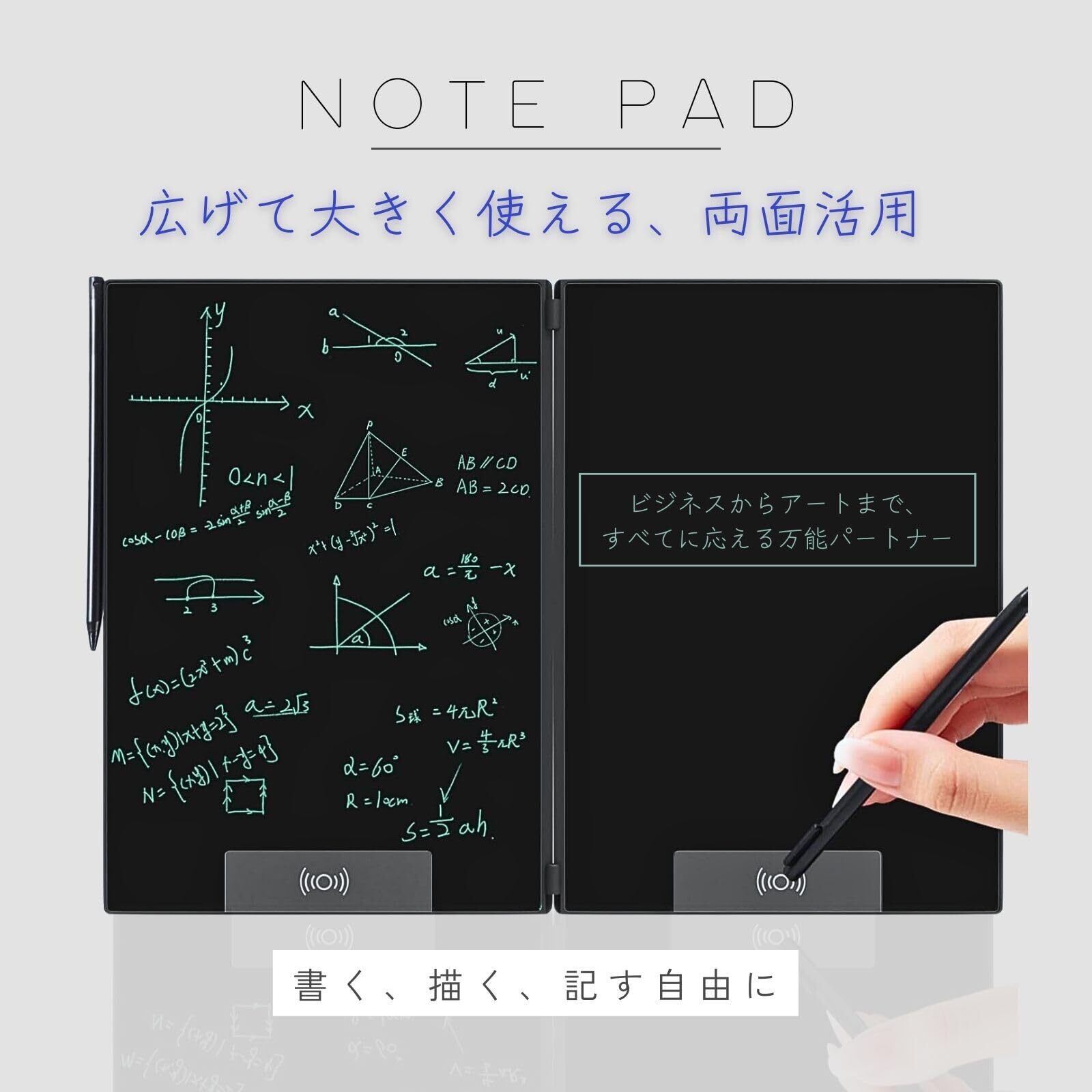 電子メモパッド 消せるパッド 手書きボード 折り畳み式 薄型 メモパッド 電子ライティングボード 14.3インチ 2画面 大画面 携帯 ポータブル 薄型デザイン 電池式 (black-デュアル画面) | グランメゾンショップ