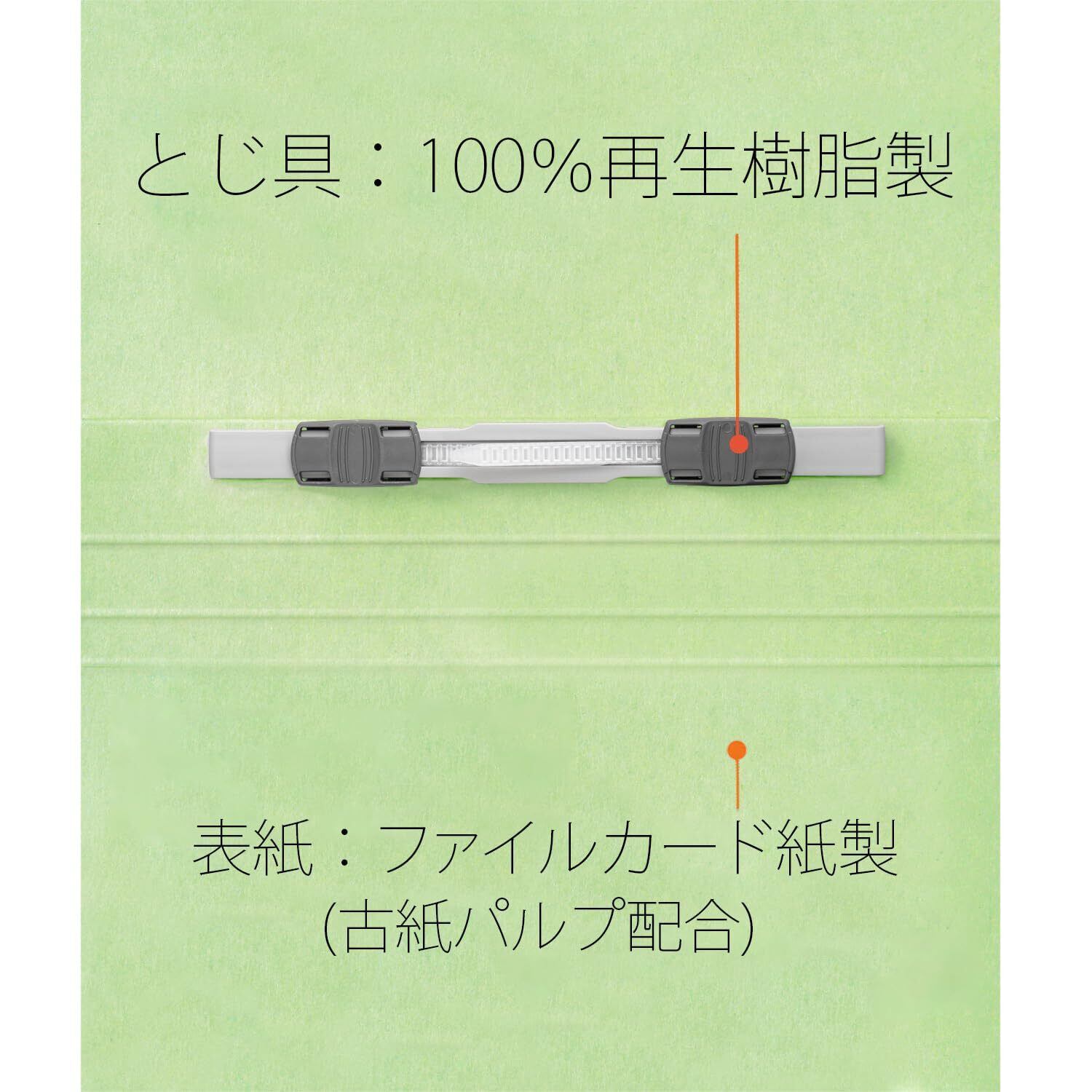 【材質】表紙:ファイルカード紙(古紙パルプ配合)、とじ具:再生PP100%