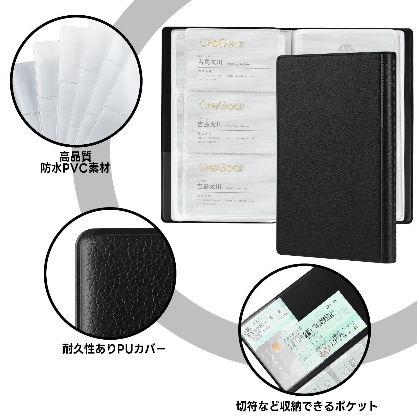 CREGEAR 名刺ホルダー 240枚 名刺ファイル 収納 大容量 名刺フォルダー クレジットカードケース 名刺入れ ビジネス用 分類管理 シンプル おしゃれ 男女兼用 ブラック