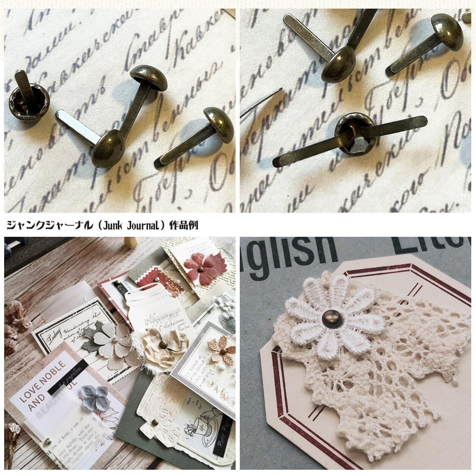 ポイント➭細工や工作の材料などにおすすめの割ピンです。カルトナージュ、スクラップブッキング、アルバム、ギフトラッピング、ジャンクジャーナル、などにどうですか。