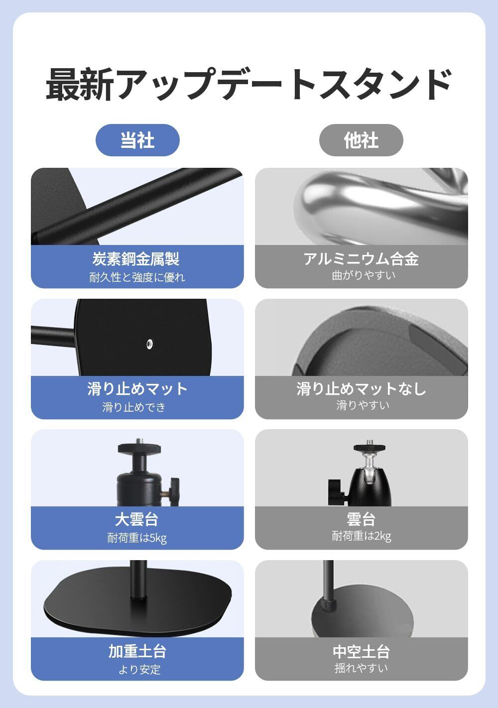 【安定感抜群·耐荷重5KG】プロジェクタースタンドは炭素鋼金属支柱と加重炭素鋼土台から構成され、耐久性と強度に優れていて、最大耐荷重は5kgです。それに、底部はEVAの素材で覆われており、安定して滑り止め・制動すると同時に、移動時の卓への傷を減らすことができます。(ご注意: 揺れを避けるために、ジンバルがしっかりとねじ込まれていることを確認してください。)