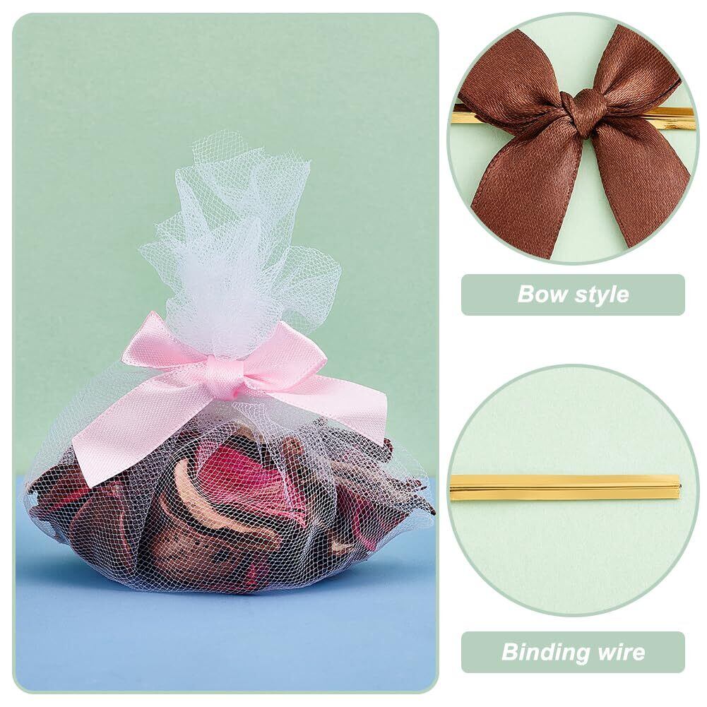 適したサイズ:サテンツイストタイリボンのサイズはそれぞれ約5.1 x 4.6cm(2 x 1.8インチ)で、ワイヤーの全長は約8cm(3.1インチ)です。バッグの包装やクラフト制作に適切なサイズです。