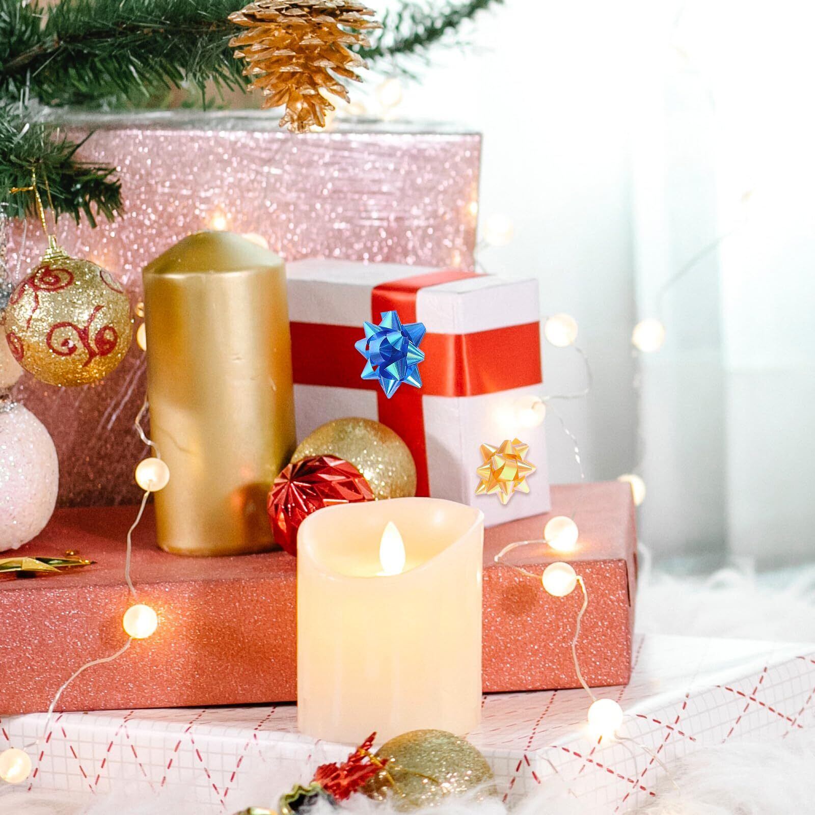 【祭りの装飾】 リボン ラッピングは包装、 スマスデーなどの装飾に最適で、窓、テーブル、壁、家具、冷蔵庫などの場所に貼り付けることができます。