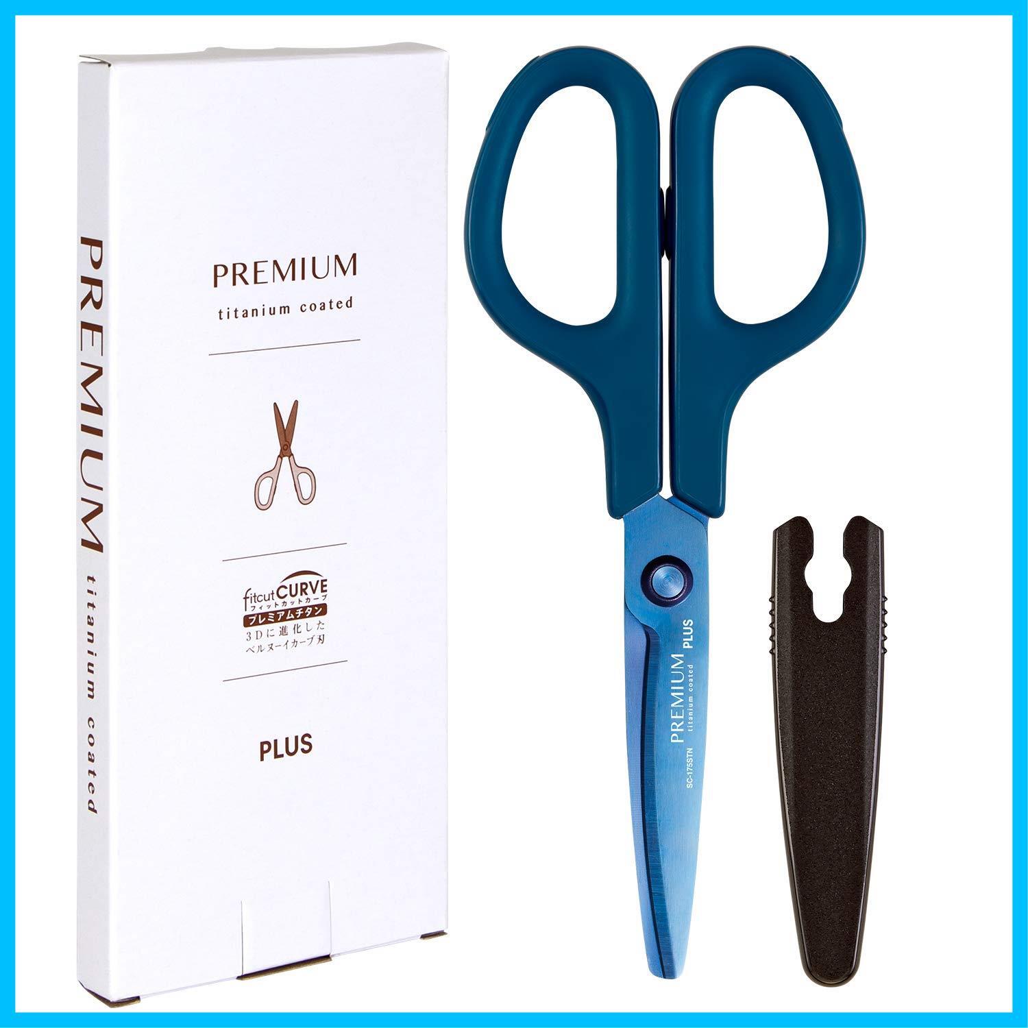プラス はさみ 汚れ・サビに強い フィットカットカーブ プレミアムチタン ベタつかない 30度 切れ味継続加工 紙箱包装 ネイビー 35-723