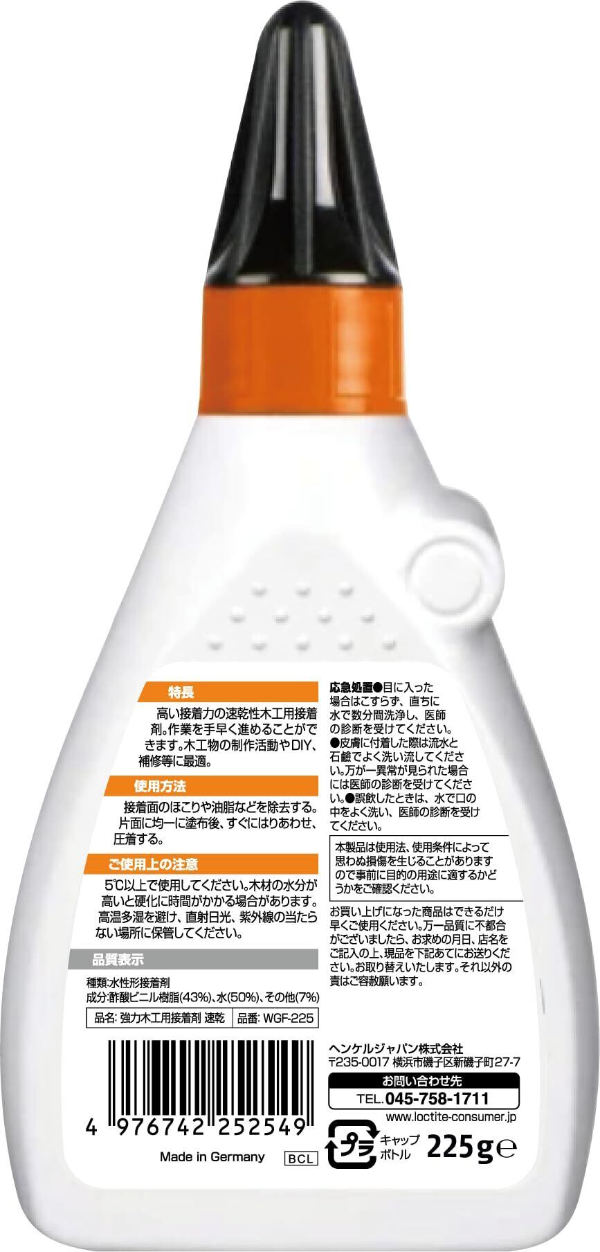 パッケージの内容:LOCTITE(ロックタイト) 強力木工用接着剤 速乾 225g - 高い接着力の速乾性木工用接着剤