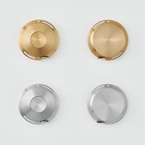アルミの塊を削り出して制作。 手に持った時、指の当たる部分がフィットするように少し凹んでいます。 テープはJIS1級の1.5m 抗菌タイプを使用 フチ部分の3箇所の孔によって、様々なスタイルの身につけ方、用途が広がります。 デザインは山口英文氏。 メタルメジャーと違う機能もいくつかございます。 例えば、テープはJIS1級の1.5mで、グラスファイバー素材 さらに、引き出したテープは、手を放しても、ストッパーによって固定され本体に戻らない構造。 真ん中のくぼみを押し込むと、ストッパーが外れテープが本体に戻っていきます。 材質 本体:アルミ/フック:ステンレス/テープ:グラスファイバー/機構部品:ABS樹脂 サイズ 約Φ50mm×14mm/テープ:1.5m JIS1級 抗菌タイプ 仕上げ アルマイト加工