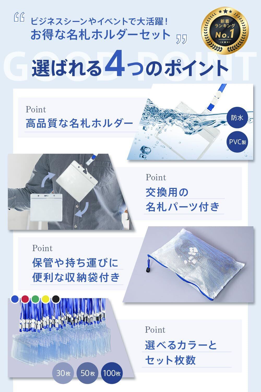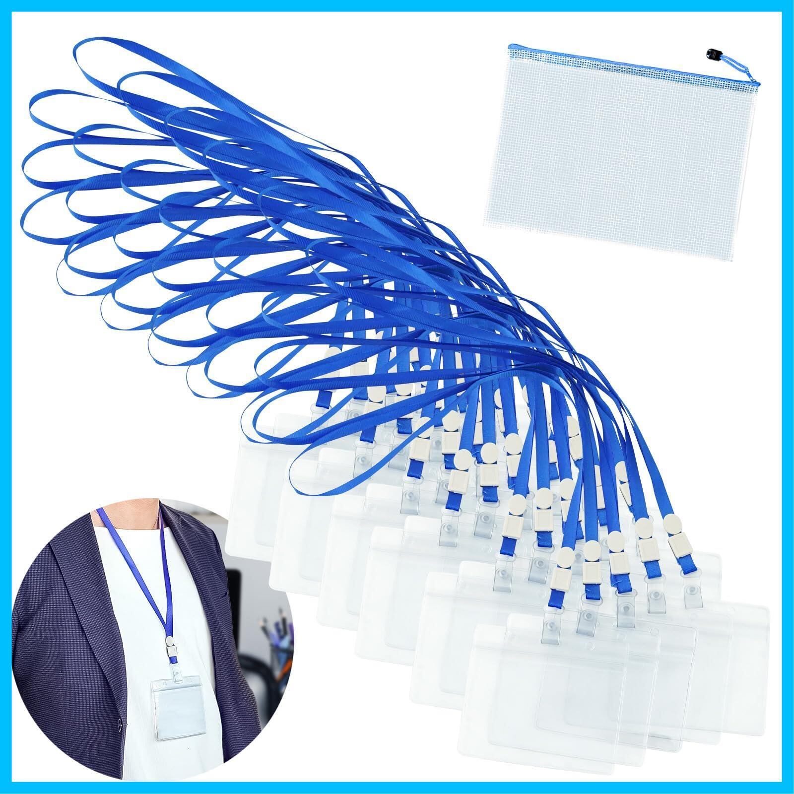 Webirth 名札ホルダー 【便利な収納袋つき!】交換用名札予備パーツ付属 名札ケース 首下げ 図面ファイル (青 30枚)