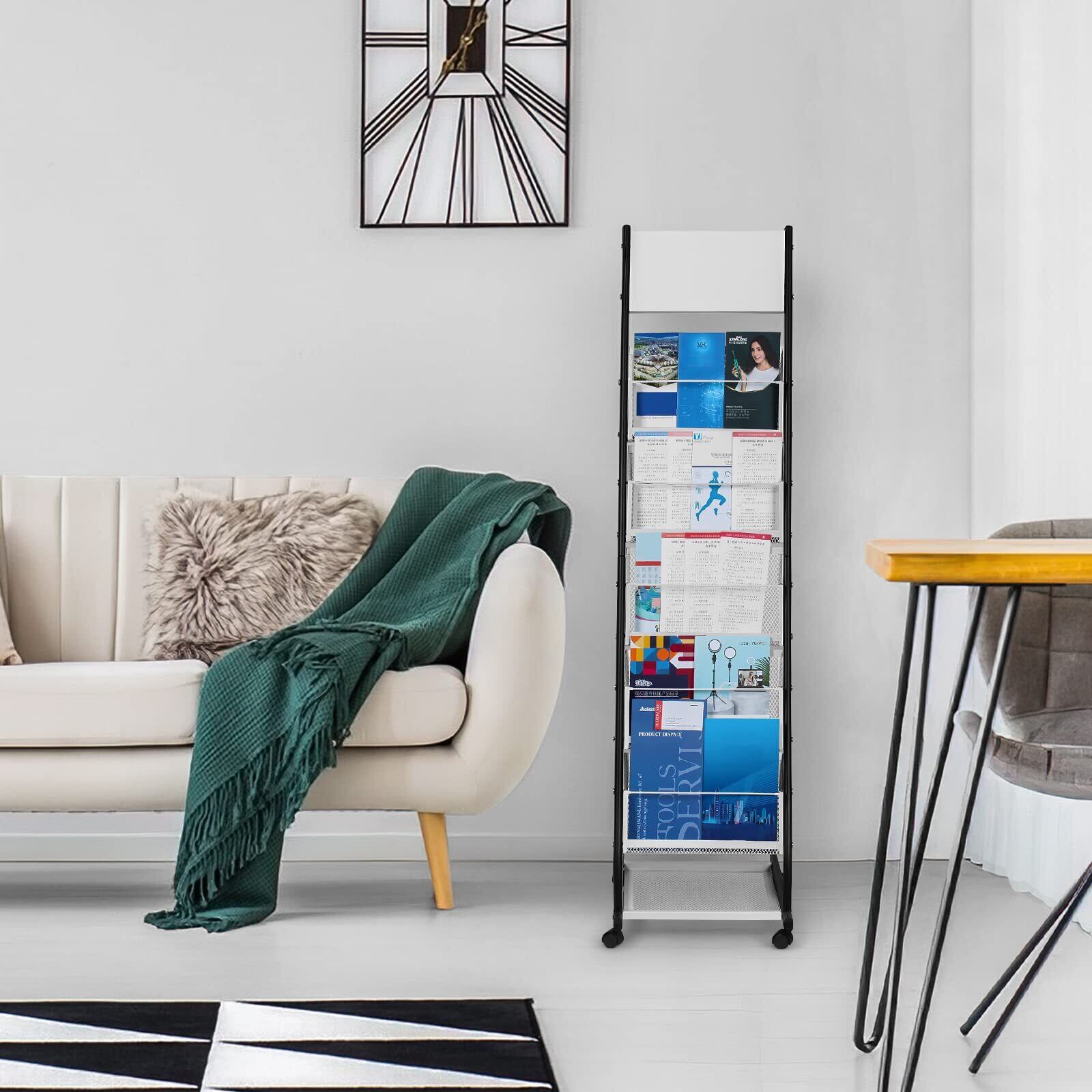 【多機能】マガジンラックは4輪で移動に便利です。レセプションエリア、待合室、学校、図書館、観光案内所、観光名所、ショールーム、ヘルスセンターでの使用に最適。あらゆる種類の情報、パンフレット、リーフレット、雑誌を表示します。