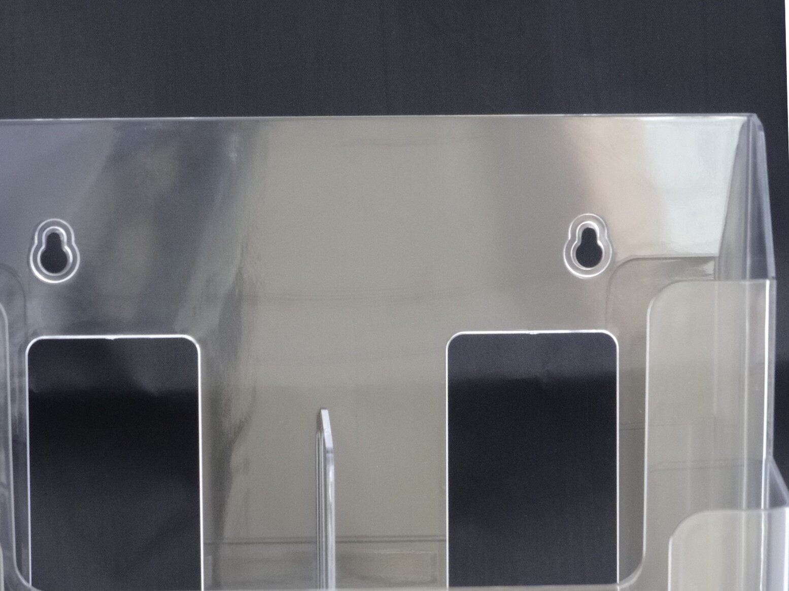 仕切り板を使えば、A4サイズの三つ折りパンフレットやはがきサイズのポストカード・DMなども置ける