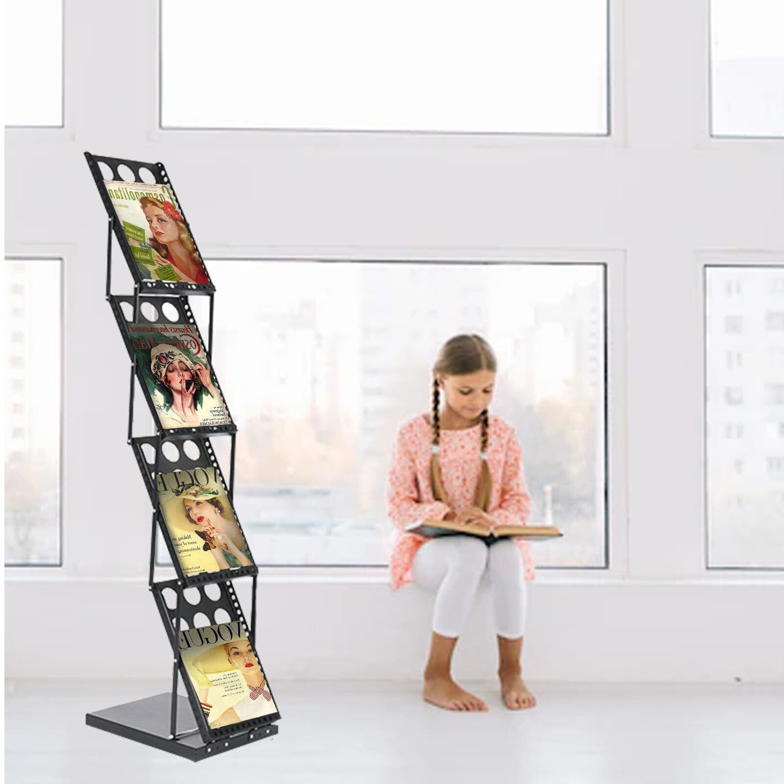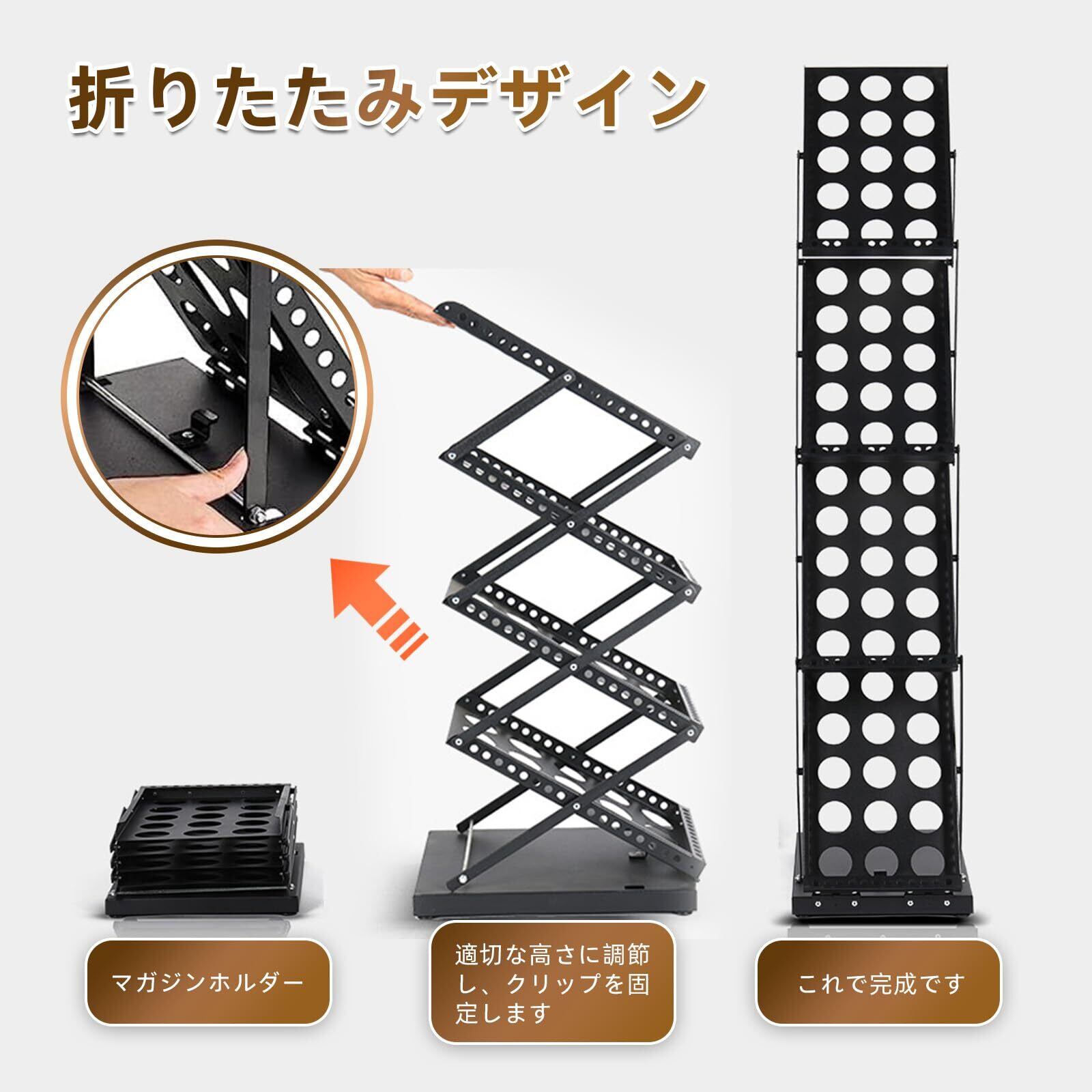 カタログラック、チラシラック、オックスフォードバッグ付きA4情報ラック折りたたみ式4層アイアンラック片面パンフレットラック垂直床置きファッションマガジンラック本棚、展示会、リビングルーム、寝室に最適なディスプレイラック(黒) | グランメゾンショップ