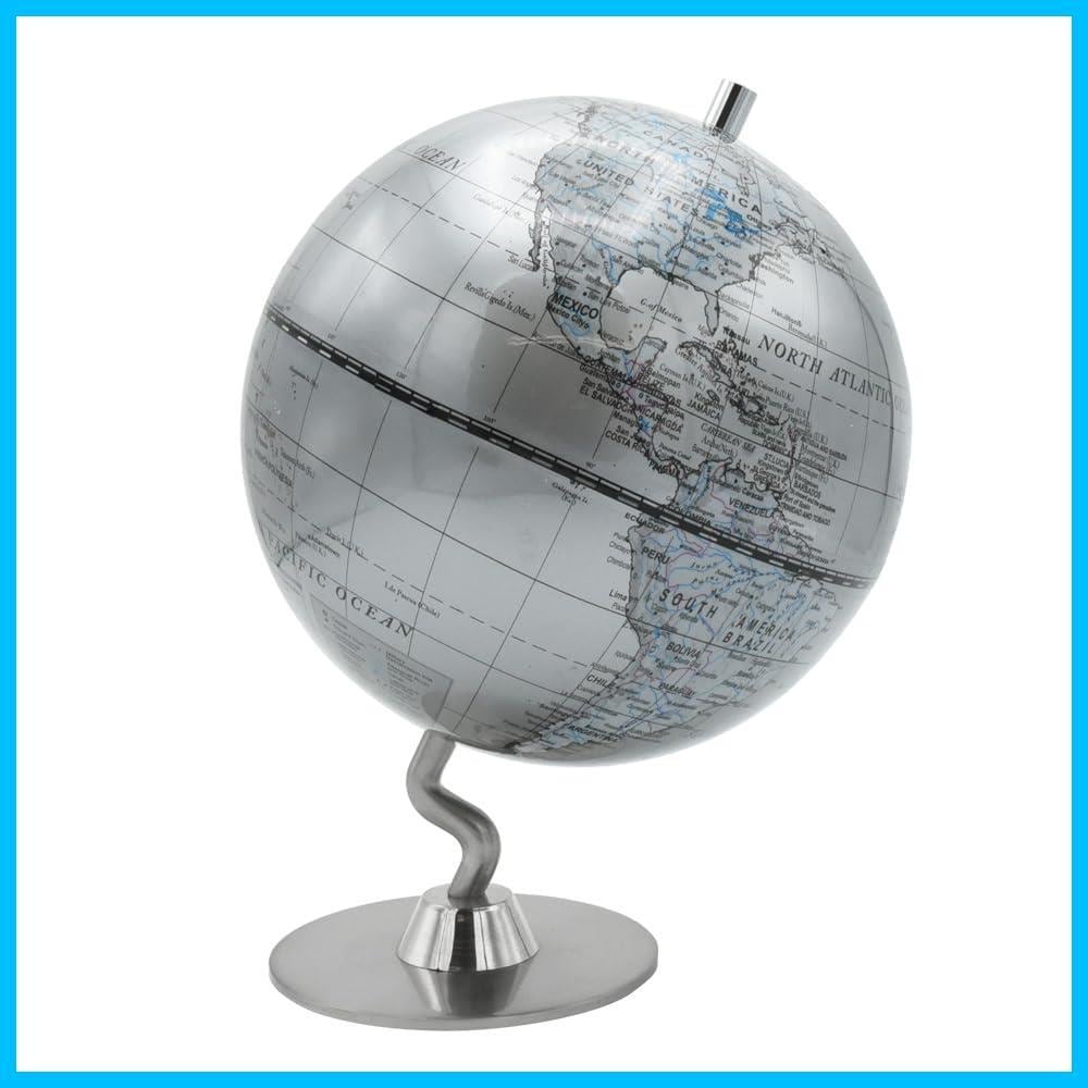 hackgear インテリア地球儀 アンティーク調 世界地図 地理 オブジェ 英語表記 空間演出 小道具 (シルバー)