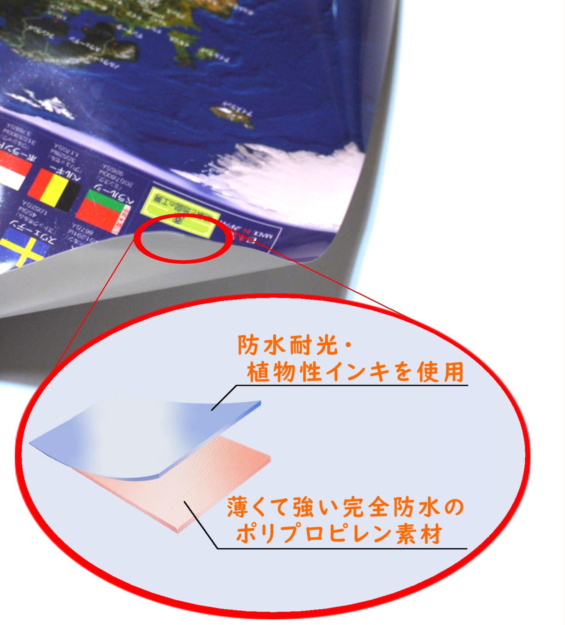 衛星世界地図 宇宙から見た美しい地球 海底地形図 大きなA1サイズ インテリア お風呂のポスター 完全防水 国旗 面積 人口 日本製 絶景と地図の工房