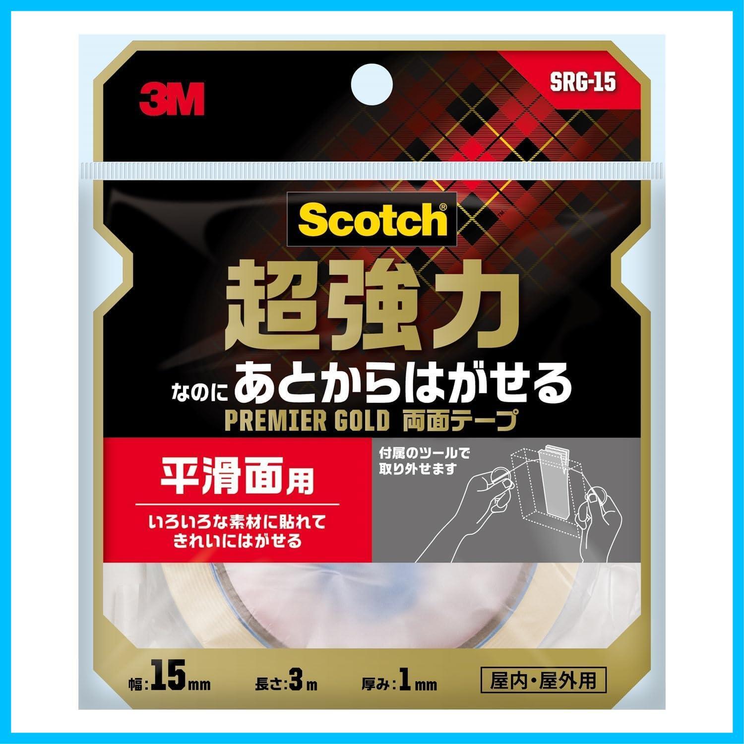 スリーエム(3M) 両面テープ 超強力 なのに あとから はがせる 平滑面用 スコッチ セミロング プレミアゴールド 幅15mm×長さ3m SRG-15