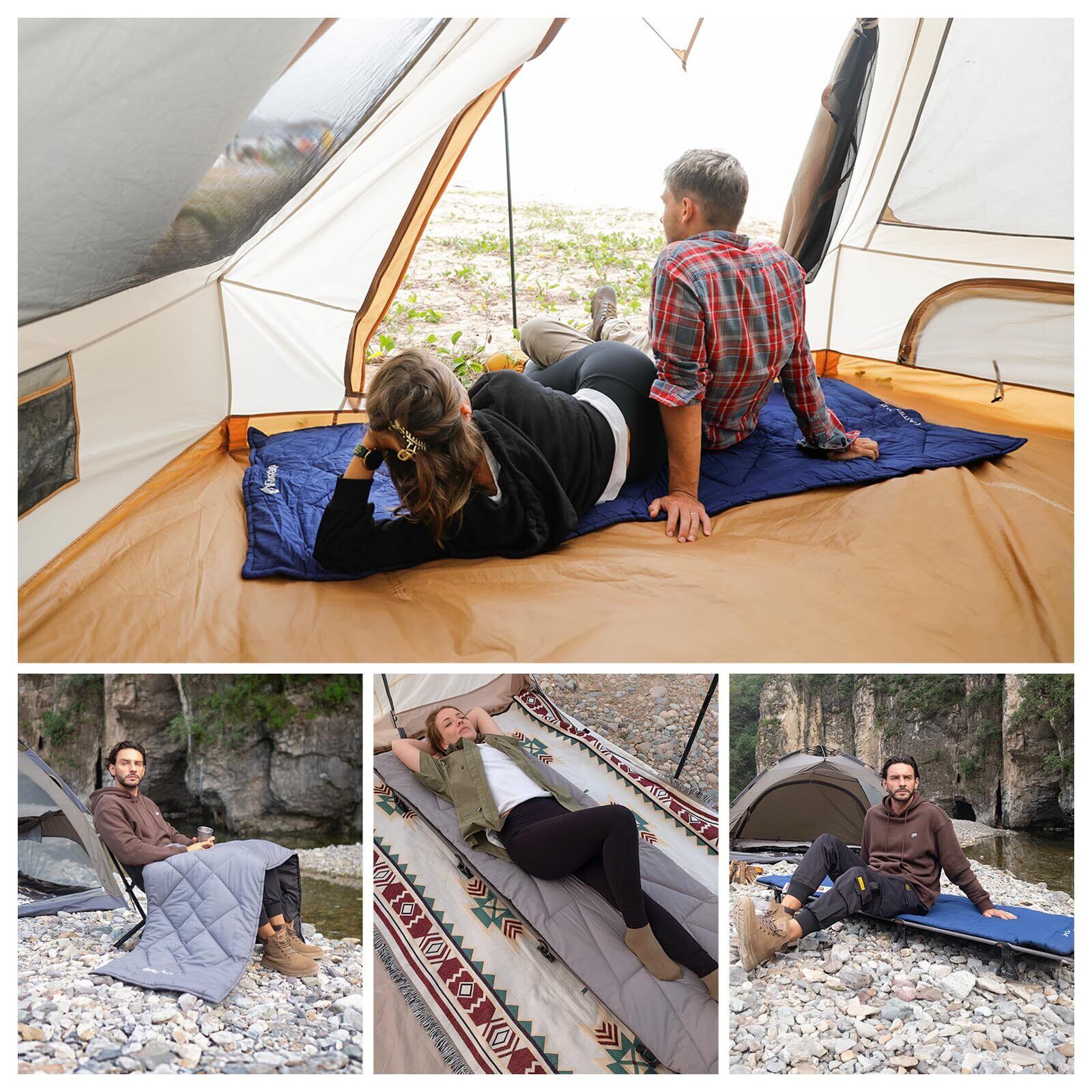 【肌に優しい素材】表面はポリエステル/コットンを使用し、肌触りが柔らかくて快適です。内側には350g/㎡の綿が入っており、アウトドアでも暖かくて快適な睡眠をとることができます。