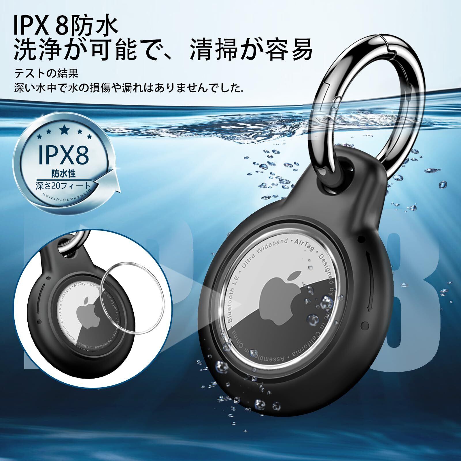 Inesore for AirTagケース、全包み式一体ケース、防水キーホルダーTPU製/携帯に便利で衝撃に強く/擦傷防止/酸化防止、車の鍵/バッグ/荷物/財布/バッグに掛け、位置を特定しやすく、材質は信号に影響がなく、耐性が高い (Black-4)