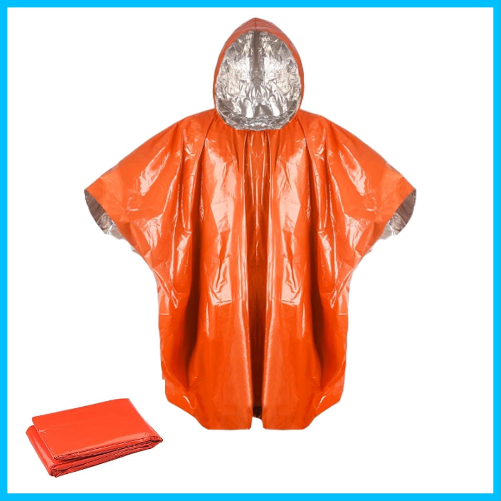 Phyxiul 防災グッズ サバイバルシート 緊急シュラフ アルミ寝袋 防水 防風 防寒 保温 手軽登山 アウトドア 便利なポンチョ 地震用 応急処置レインコート (オレンジ) | グランメゾンショップ
