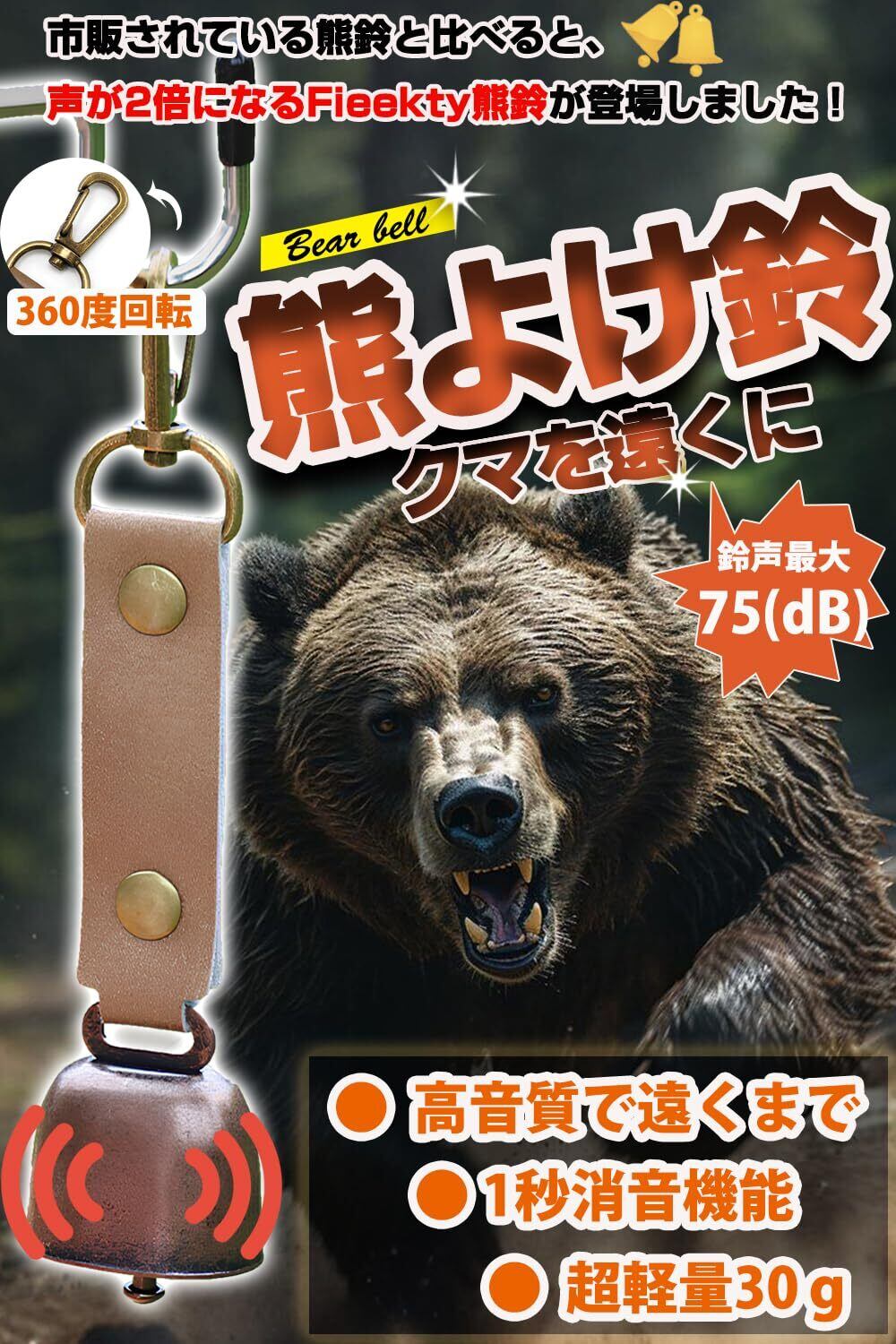 【熊よけベル】熊よけ鈴を鳴らしながら移動して、熊側に予めこちらの存在を認識させることが大切だとされています熊の恐怖から逃れるならばシンプルなものです。この熊鈴、ベルは結構効果的!小さいながら音は大きい。試しに鳴らしてみると、離れていても音がしっかり聞こえます。