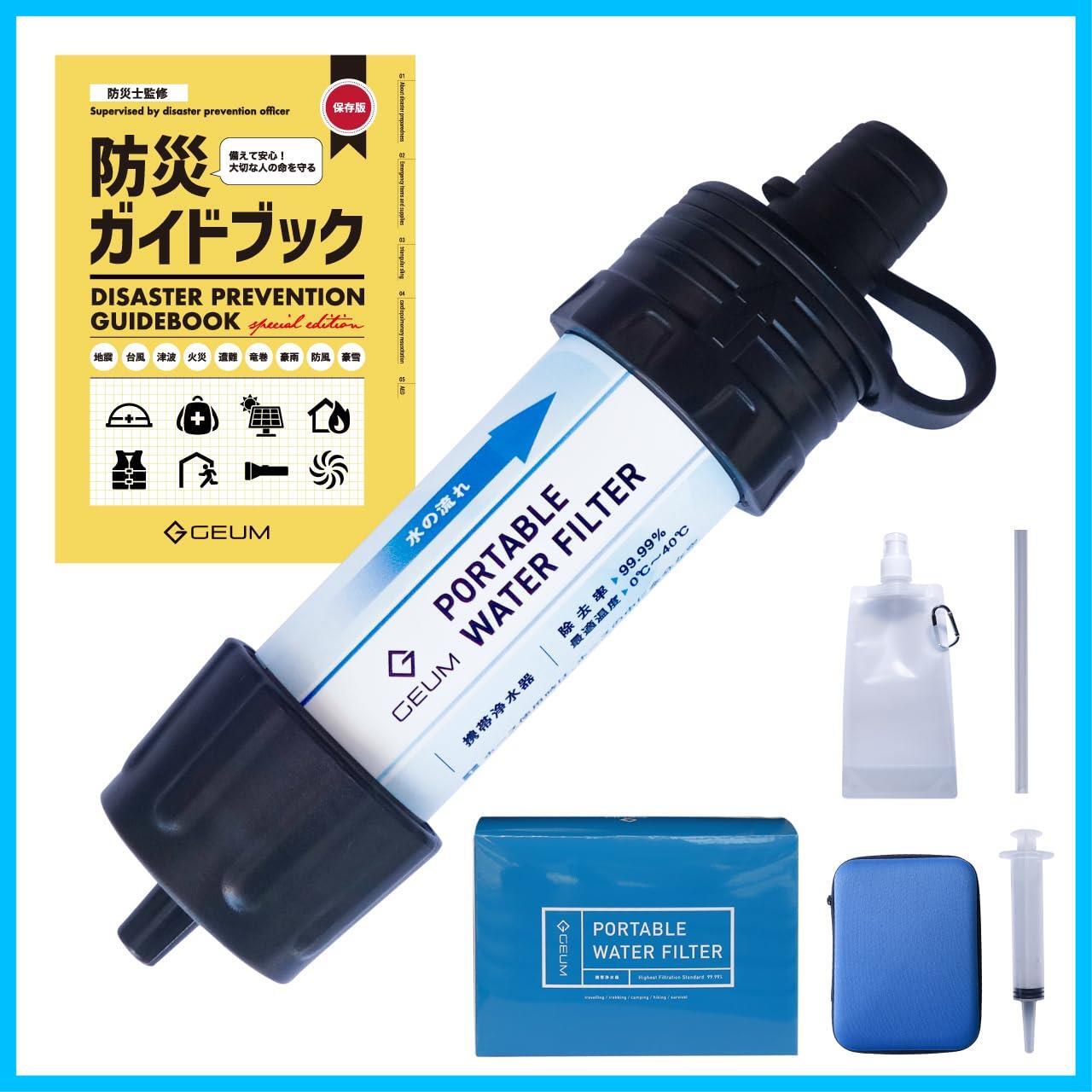 GEUM 防災士監修 携帯浄水器 携帯用浄水器 除去率 99.999% 5000L 浄水器 防災グッズ 収納ケース 軽量 コンパクト アウトドア サバイバル 地震 災害 説明書&防災ガイドブック付き GEUM024
