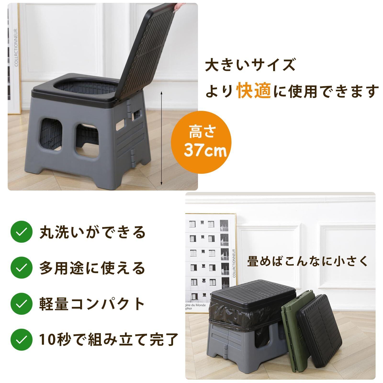 簡易トイレ 携帯トイレ 災害用 非常用トイレ 折り畳み 防災グッズ ポータブルトイレ Mサイズ 排便袋 アウトドア 耐荷重100㎏ 簡易トイレポータブルトイレ(ブラック&グレー)
