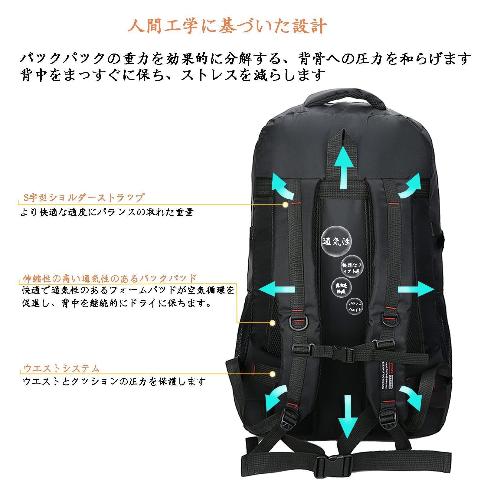 【人間工学に基づいたデザイン】このバックパックは人間工学に基づいて設計されており、ショルダーストラップとバックにメッシュデザインが施されています。通気性に優れているため、夏でも蒸れません。 内蔵のフォームパッドは耐衝撃性と減圧性があり、登山バッグリュックはチェストストラップとウエストベルトのデザインで、これにより、パックを安定させ、背中に快適に置くことができます。重量を均等に分散し、肩への圧力を軽減します。 久しぶりに肩を疲れさせません。 この登山バッグは、旅行、登山、ロッククライミング、ハイキング、アウトドア、スポーツ、キャンプなどに持ち運ぶことができます。超実用的で大容量のバッグは、釣りバッグ、サイクリングバッグとしても使用できます。 幅広い用途。