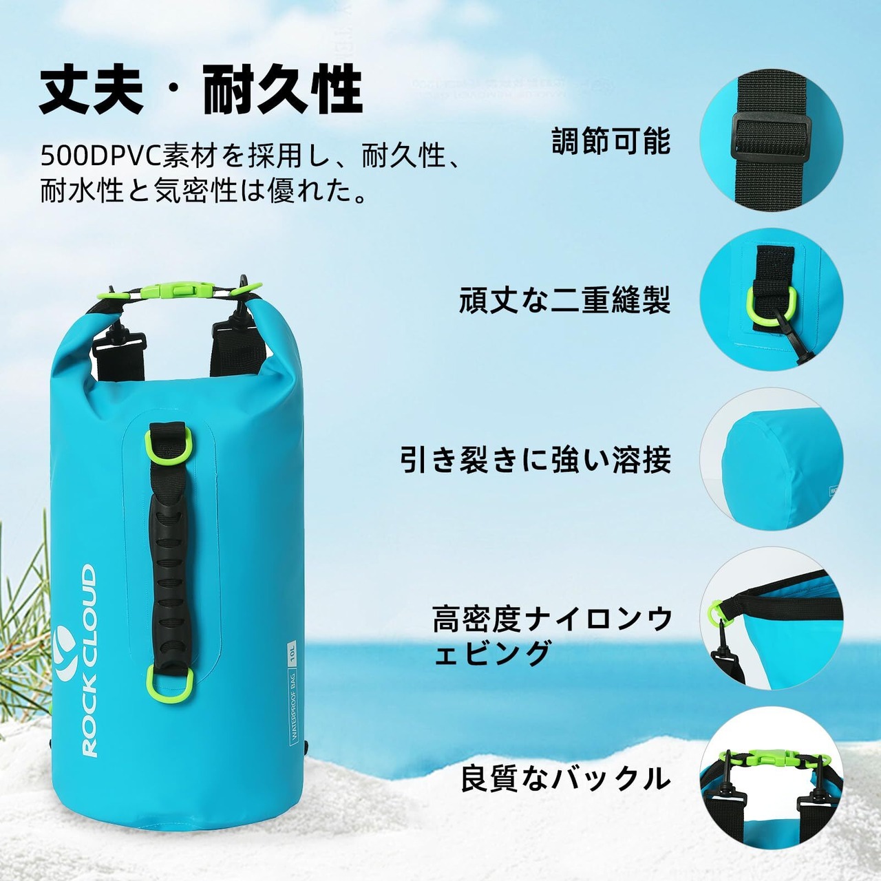ROCK CLOUD ドライバッグ 防水バッグ ドラム型 防水ポーチ リュック 折りたたみ 軽量 10L 20L アウトドア 海水浴 釣り ビーチ 水泳 登山 旅行用
