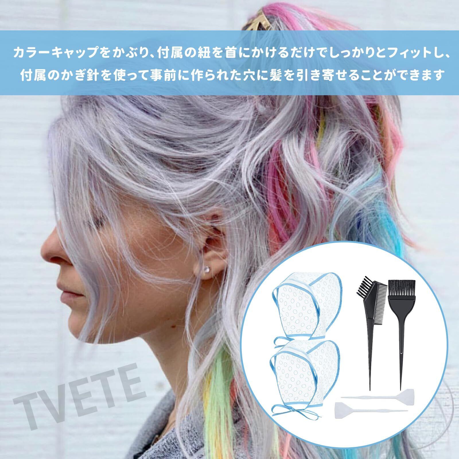 TVETE メッシュキャップ ヘアカラー ハイライトキャップ ハイライト ヘアカラー 【6個セット】 ヘアキャップ 使い捨て プラスチック製 ブラシ付き ハイライトニードル付き ヘアダイブラシ ヘアサロン 美容室 自宅