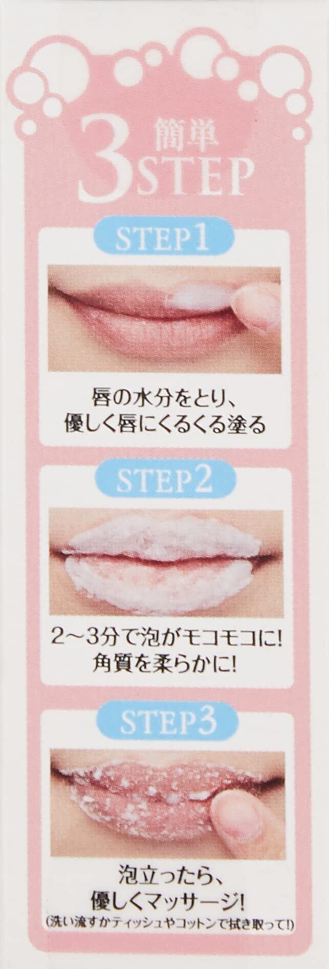 「ガサガサ」、「シワシワ」唇が老け顔の原因。泡で浮かせて角質ぽろぽろピーリング。プロテオグリカン、リピジュア、コラーゲン、スクワラン配合。ほんのりピーチの香りです。