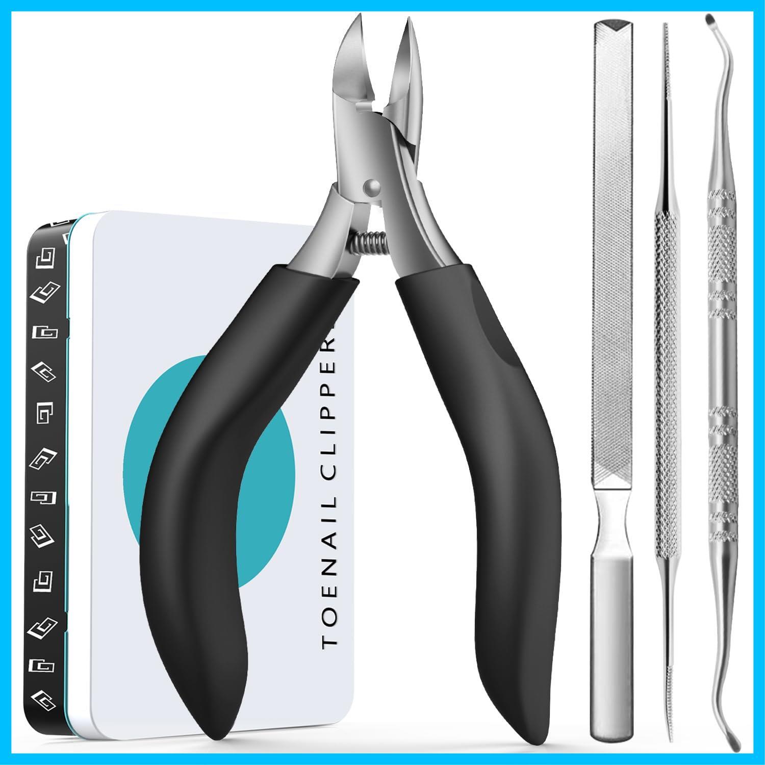 爪切り ニッパー 【超鋭い刃】高齢者の方でも、厚い爪や巻き爪、陥入爪などを軽い力で切ることができる爪切りです - RONAVO 足用 爪切り 高級・高硬度・極薄やすり・延長ハンドル・カーブ刃・は美しい包装 (巻き爪用爪切り-ブラックキット) | グランメゾンショップ