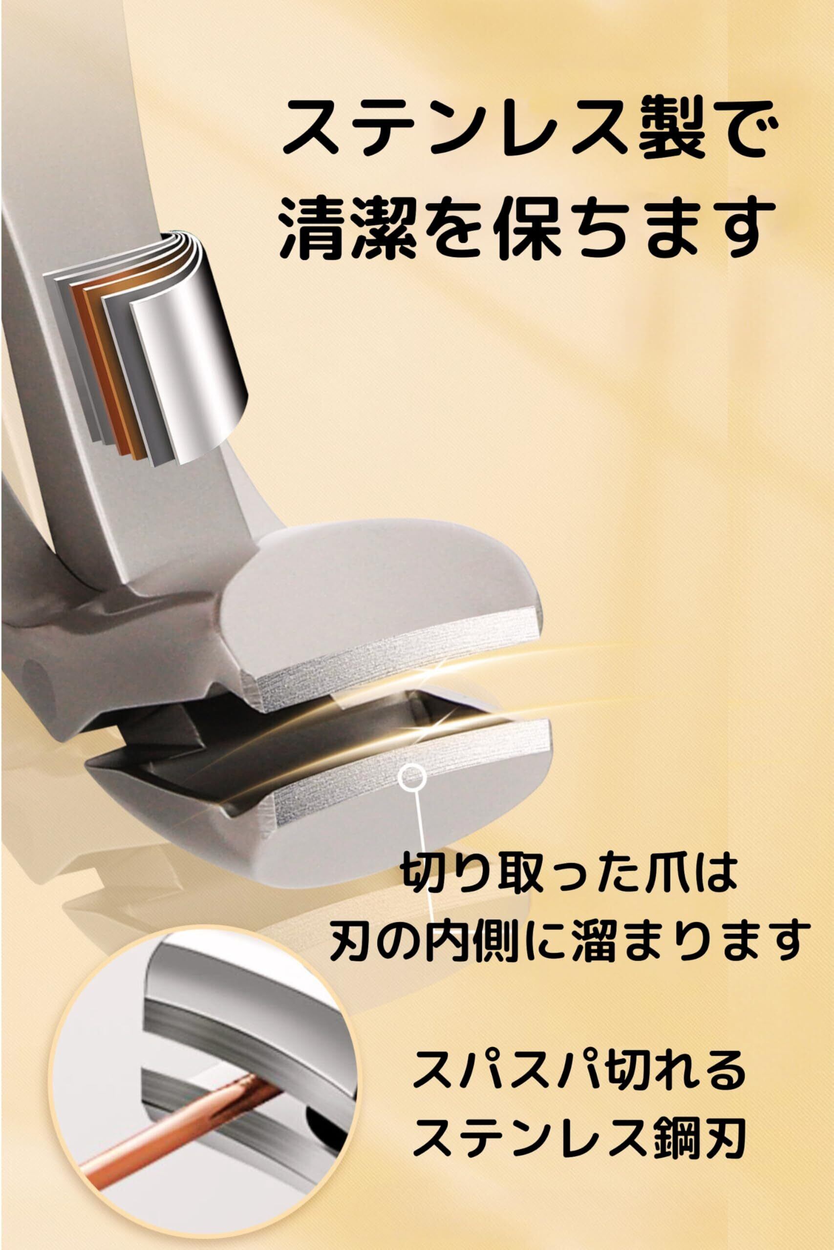 刃の奥ポケットは爪が溜まりますので飛び散り防止カバー付きになっています。ステンレス製なので洗っても錆びにくく、清潔にお使い頂けます。