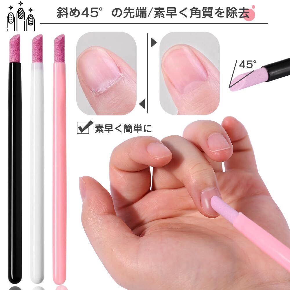 ストーンプッシャー キューティクルプッシャーペン3本セット 甘皮処理用キューティクルプッシャー ネイルアートアクセサリー 斜め45°の先端 素早く角質を除去 軽量 持ち運びに便利 日常のネイルケアに最適(ピンク/ホワイト/ブラック3色各1本)