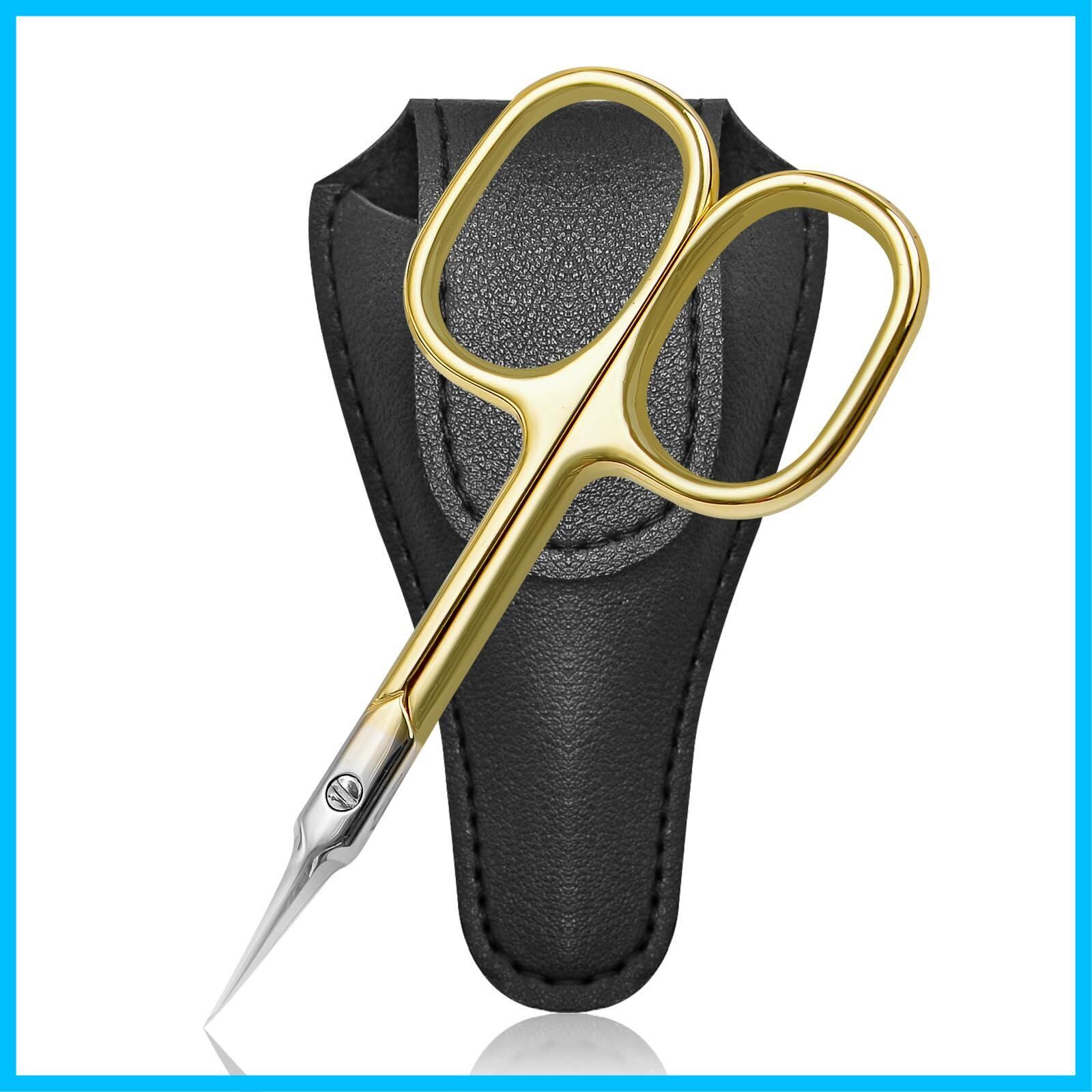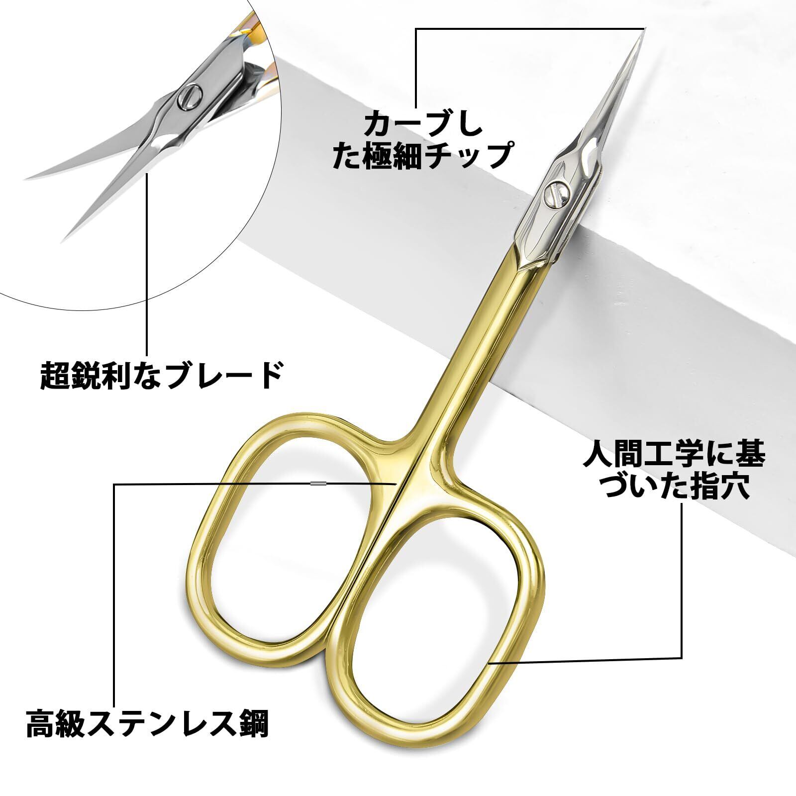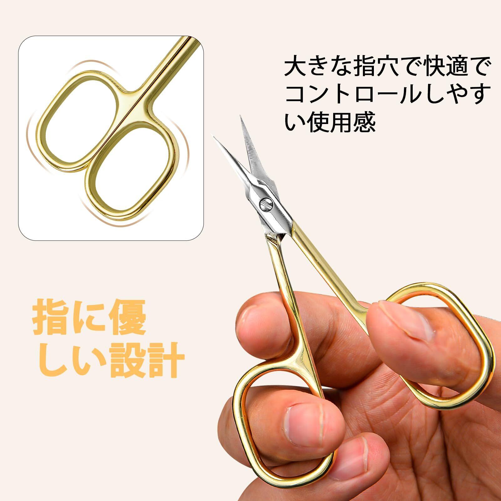 Diesisa 眉毛用ハサミ キューティクルハサミ極細 多機能美容ハサミ 高級ステンレス製 精密先端甘皮ハサミ 眉毛、鼻毛、髭、甘皮処理 - ゴールド