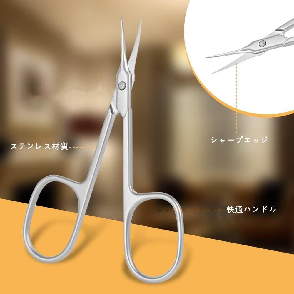 LIKENNY キューティクルはさみ 極細カーブ刃 小型 キューティクルケア用 甘皮ハサミ ステンレス製 精密先端 多機能 ネイルケア/ささくれ/眉毛/まつ毛トリム用