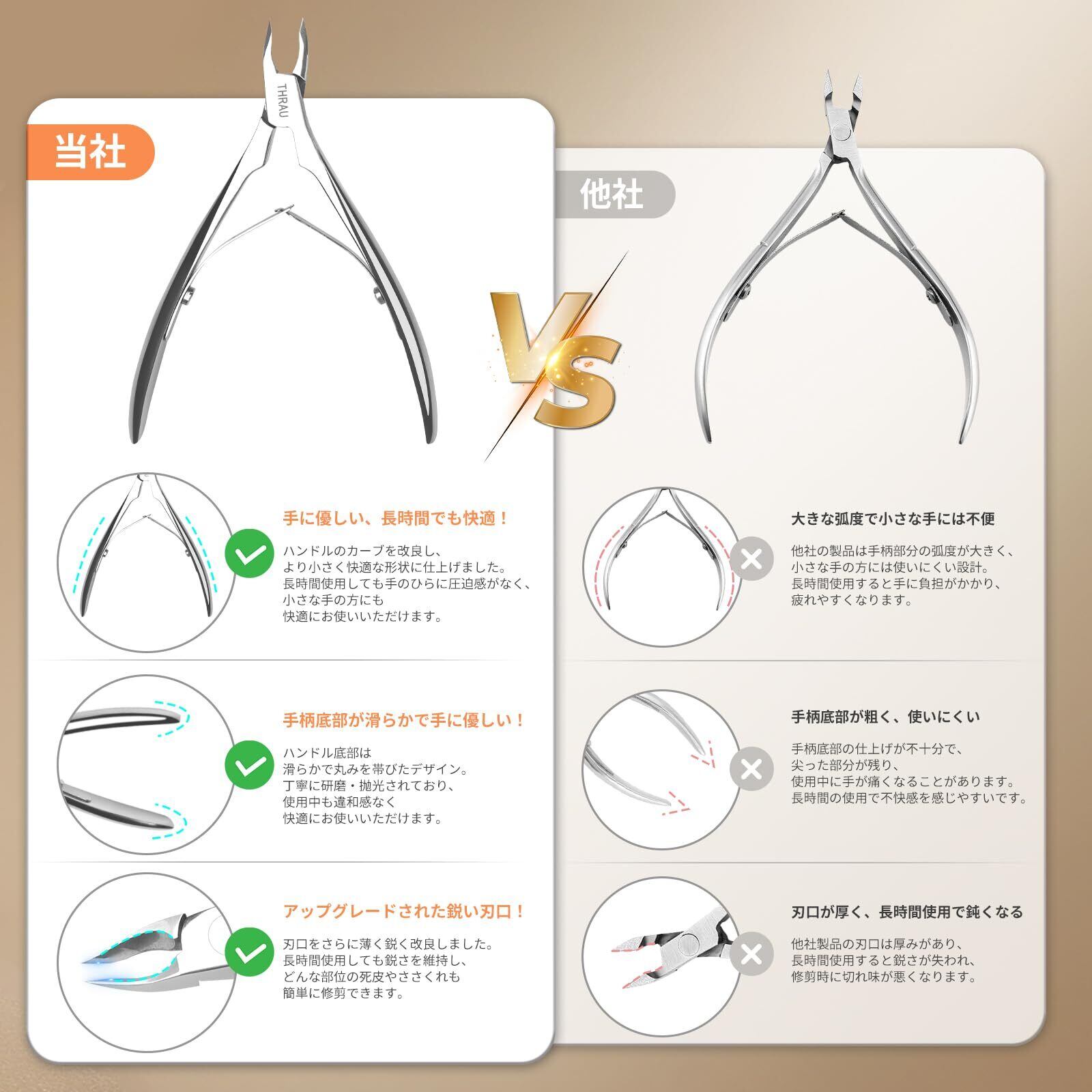 THRAU キューティクルニッパー 甘皮 ニッパー 甘皮処理 ネイルニッパー 甘皮ケア ささくれ用爪切り 外科用ステンレススチール素材 ネイルケアツール 刃先5mm