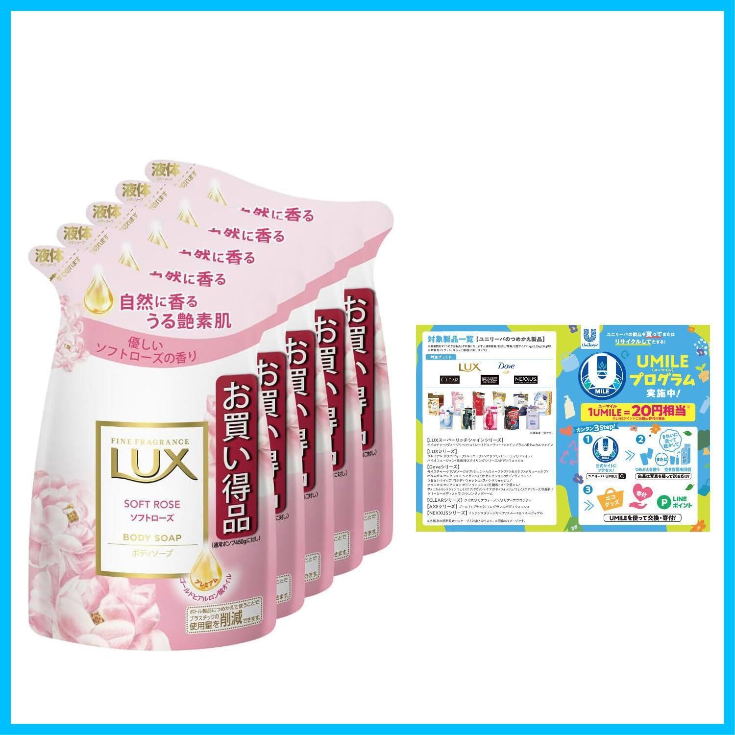LUX(ラックス) ボディソープ ソフトローズ 詰替え 300g×5個 優しいソフトローズの香り リーフレット付き ボディーソープ